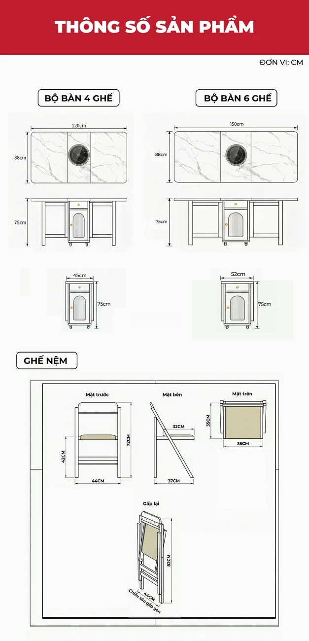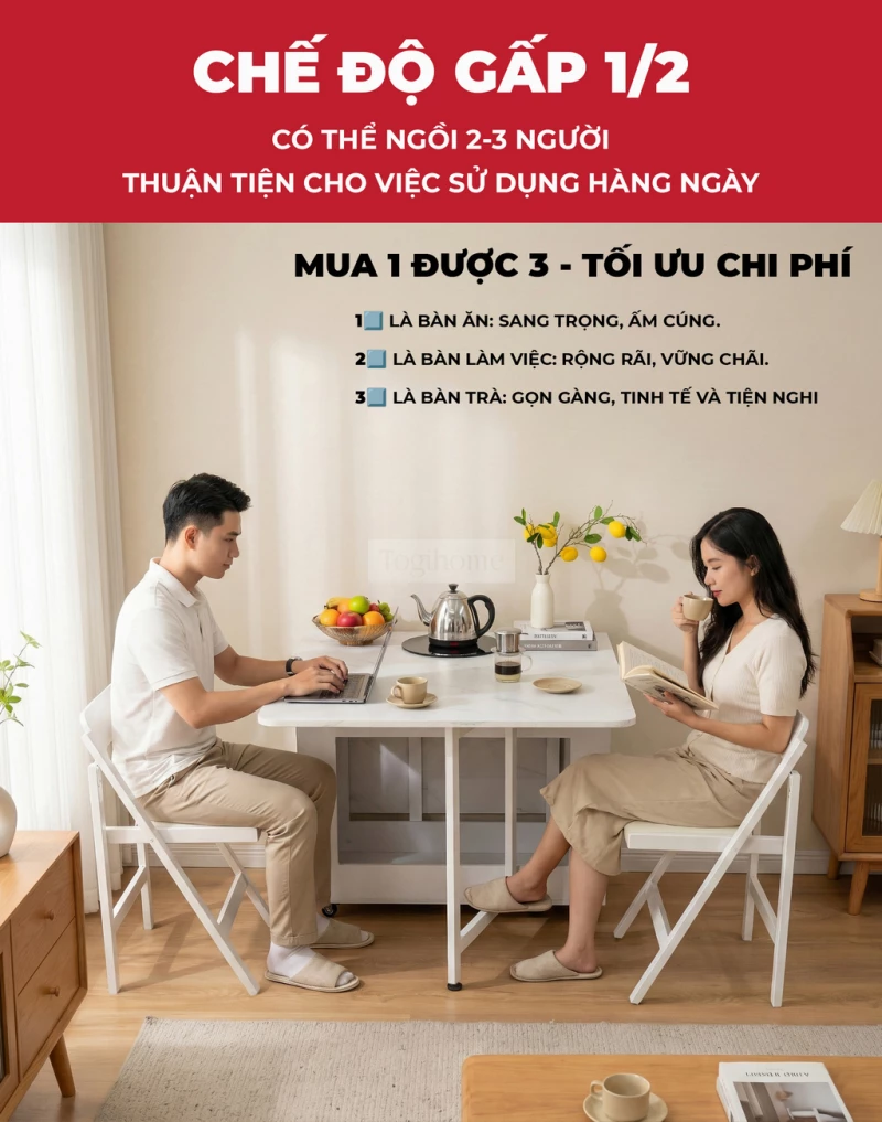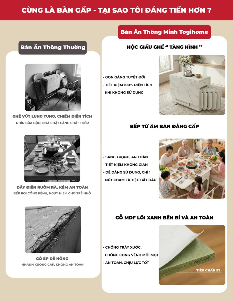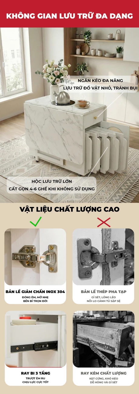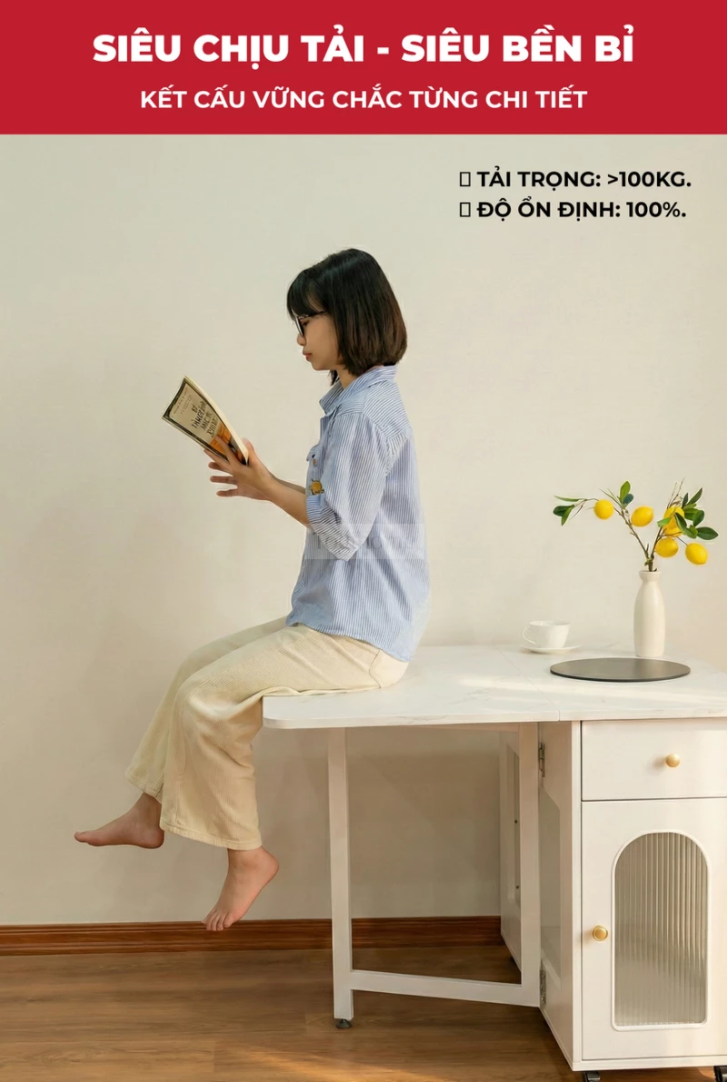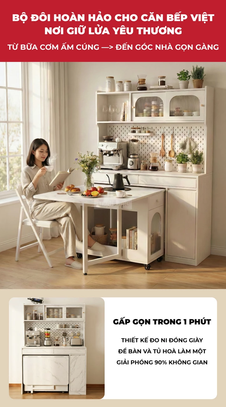 Bàn Ăn Đa Năng Tích Hợp Bếp Lẩu BA709 – Gấp Gọn Thành Tủ, Mở Rộng Tiệc 8 Người, Di Chuyển Dễ Dàng