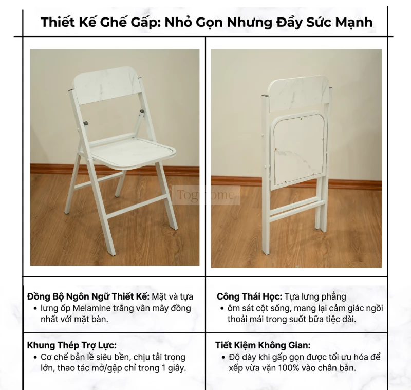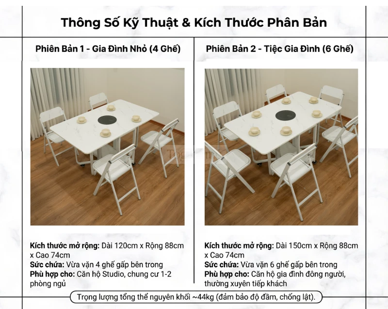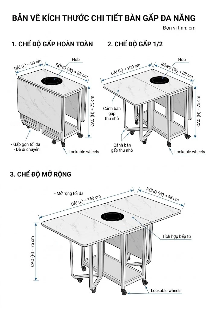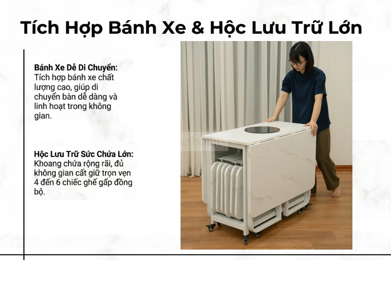Bàn Ăn Gấp Gọn Mặt Vân Đá Tích Hợp Bếp Lẩu Với 4 Chân Đỡ Mặt Bàn Siêu Chịu Lực - Mã BA121