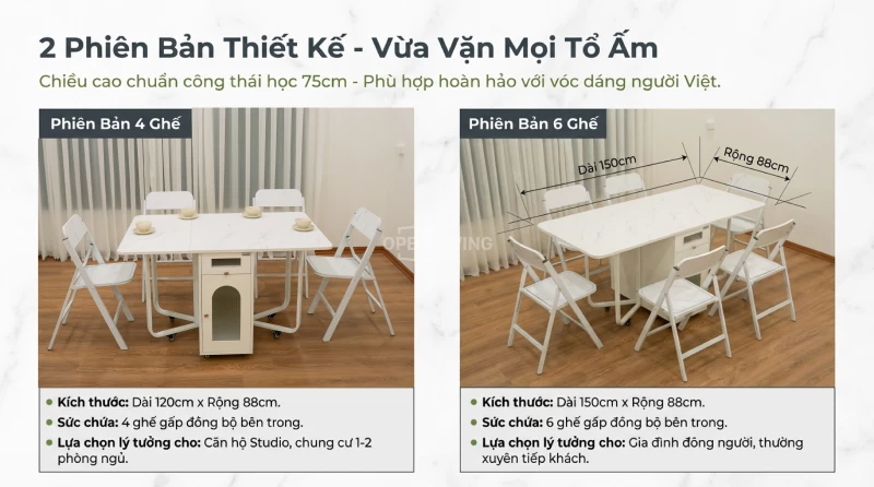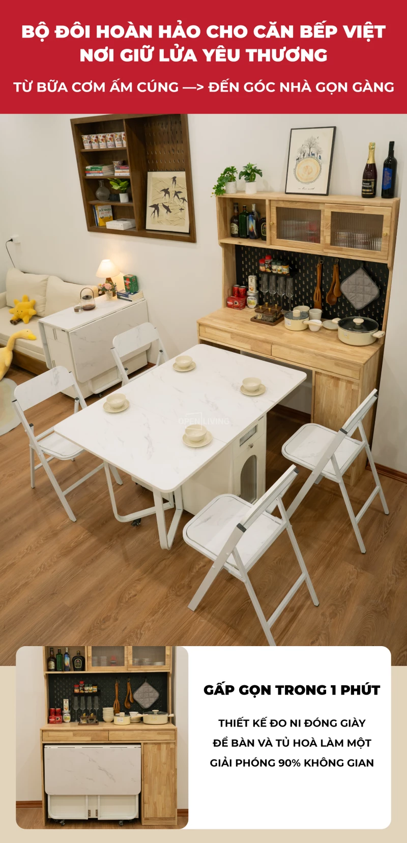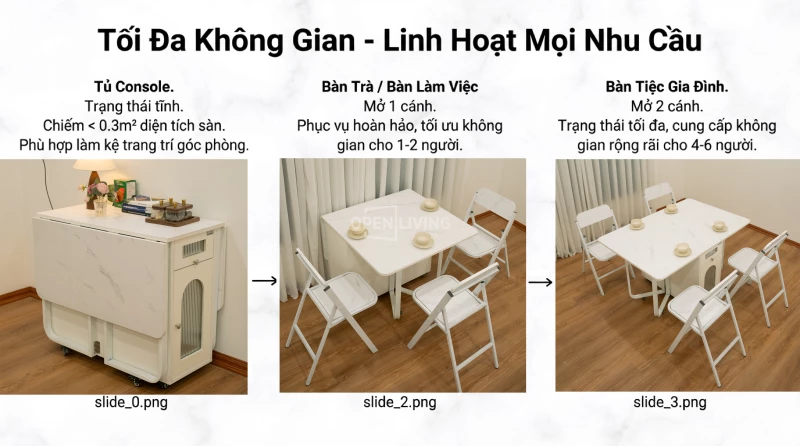 Bàn Ăn Gấp Gọn Openliving Biến Hình Giấu Ghế Với Ngăn Tủ Lưu Trữ Cho Căn Hộ Nhỏ - Mã BA143