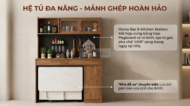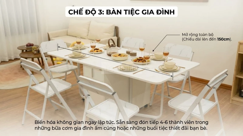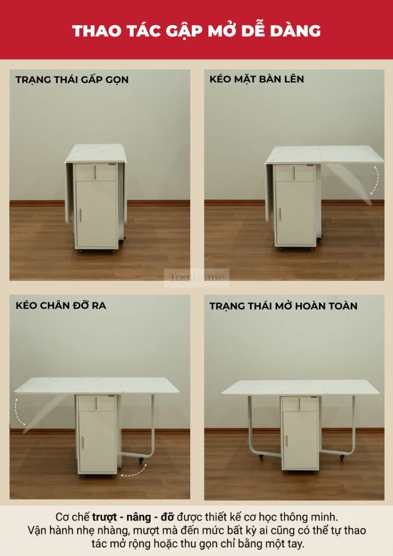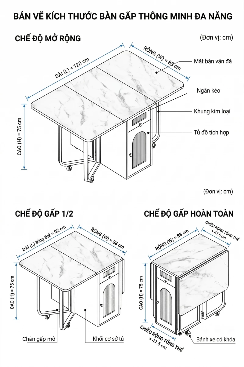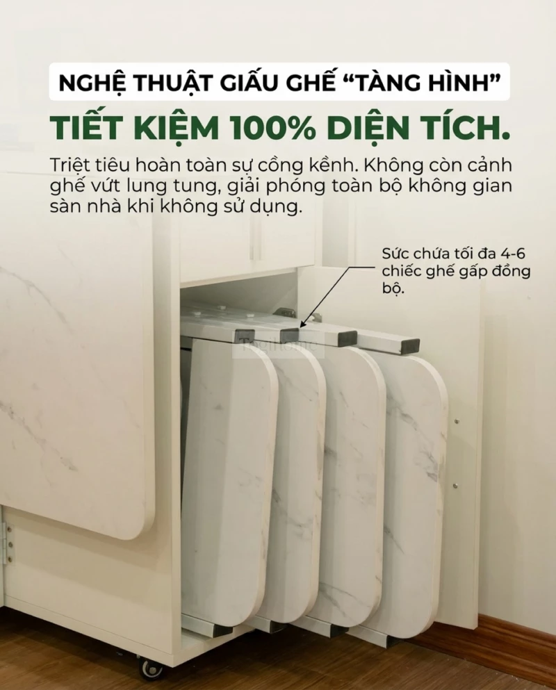Bàn Ăn Gấp Gọn Thông Minh Kèm Ghế Gấp Xếp Gọn Mặt Trắng Vân Mây Chống Bám Bẩn Tích Hợp Tủ Đồ Đa Năng Cho Nhà Nhỏ - Mã BA151
