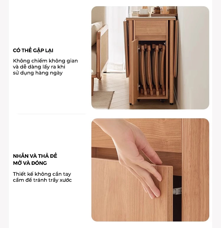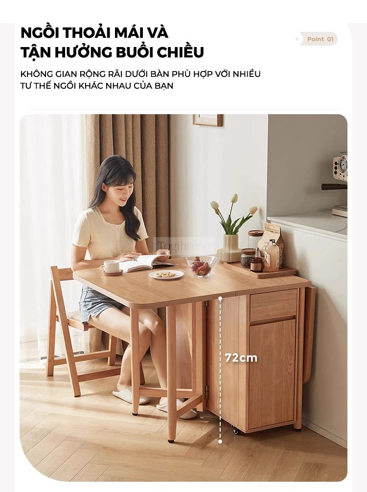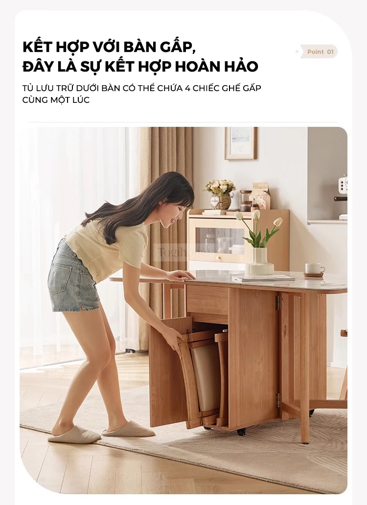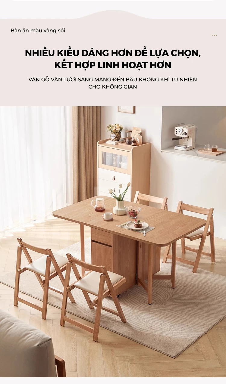 Bàn Ăn Thông Minh Thiết Kế Togismart BS102 được thiết kế từ gỗ tự nhiên cao cấp, mang đến sự chắc chắn và độ bền lâu dài. Với khả năng mở rộng linh hoạt, bàn phù hợp cho cả bữa ăn gia đình và tiếp khách. Khi không sử dụng, bàn dễ dàng gấp gọn, giúp tiết kiệm tối đa diện tích và giữ cho không gian luôn gọn gàng. Kiểu dáng hiện đại, màu gỗ tự nhiên hài hòa dễ dàng kết hợp với nhiều phong cách nội thất. Đây là lựa chọn lý tưởng cho căn hộ nhỏ, nhà phố hay gia đình trẻ muốn tối ưu không gian sống.