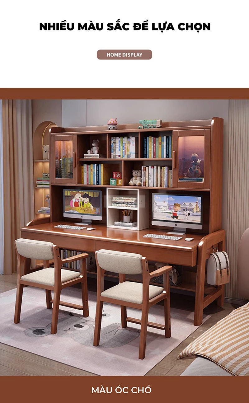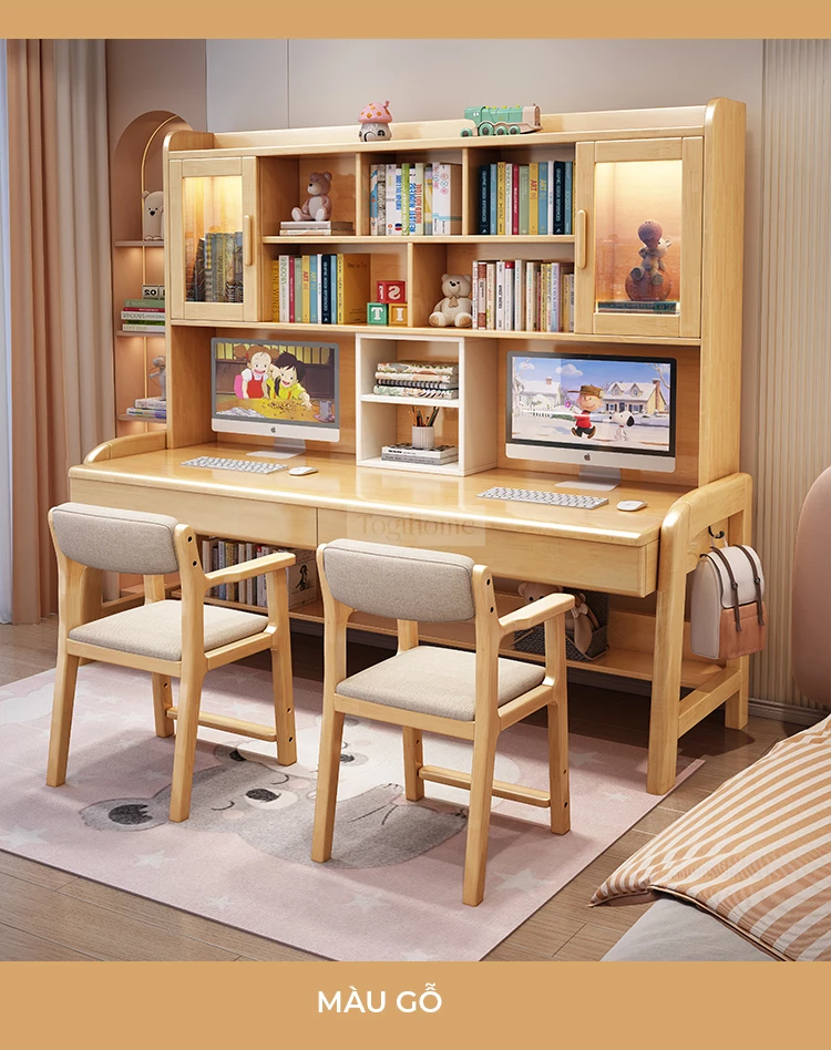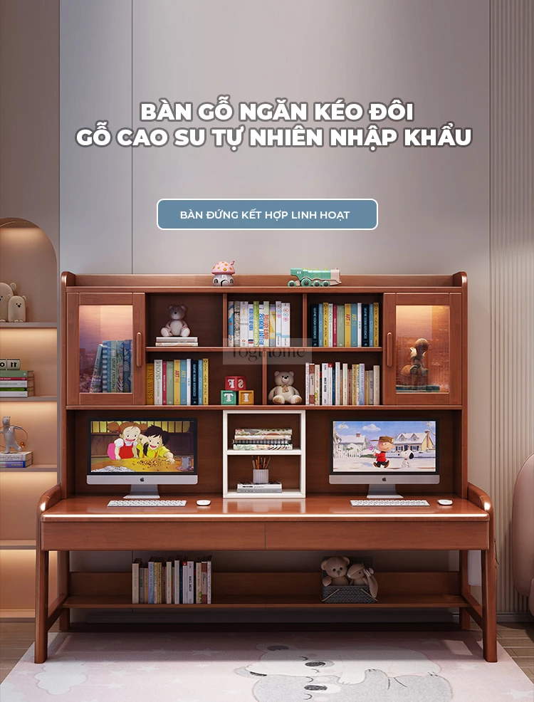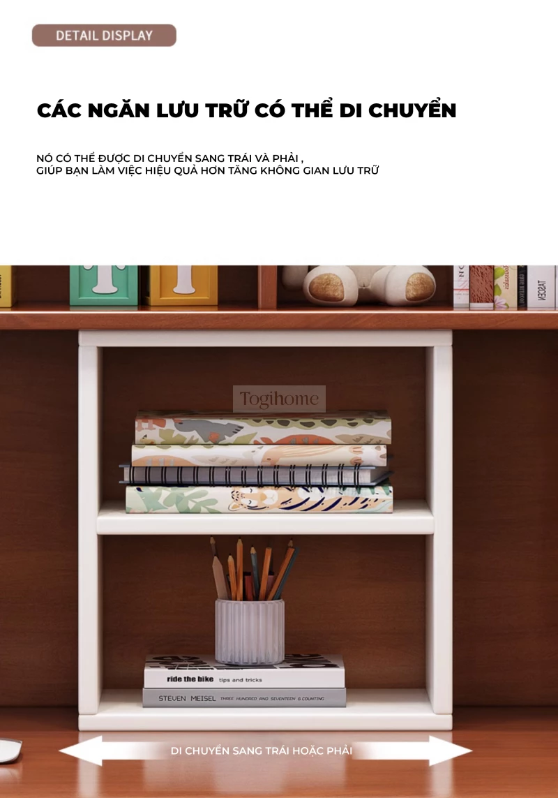 Bàn Đôi Đa Năng Gỗ Tự Nhiên Kệ Sách Lớn Togihome BGT286