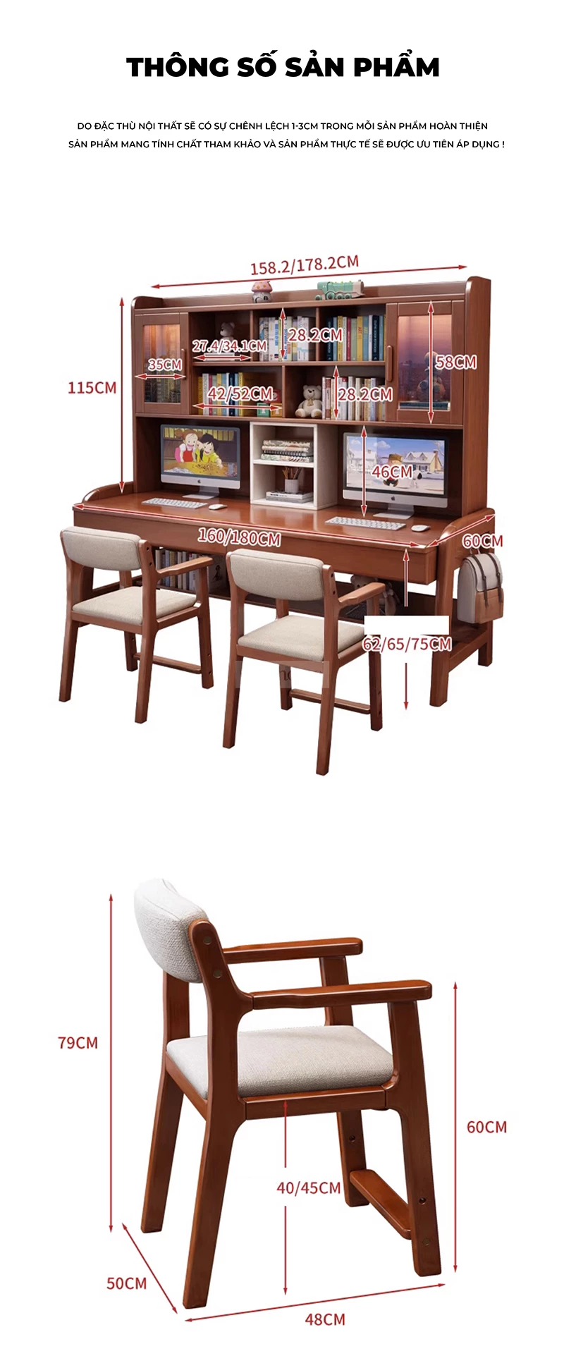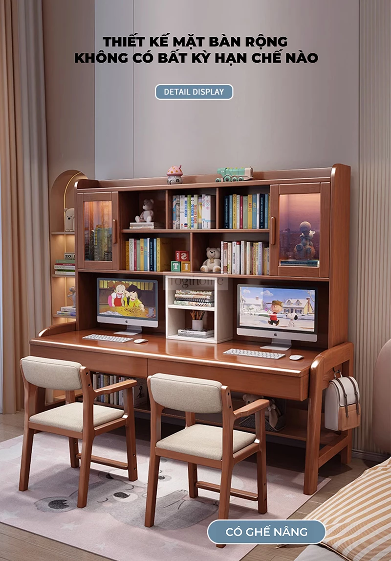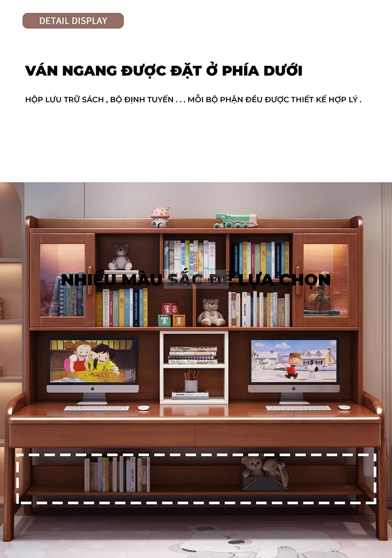 Bàn Đôi Đa Năng Gỗ Tự Nhiên Kệ Sách Lớn Togihome BGT286