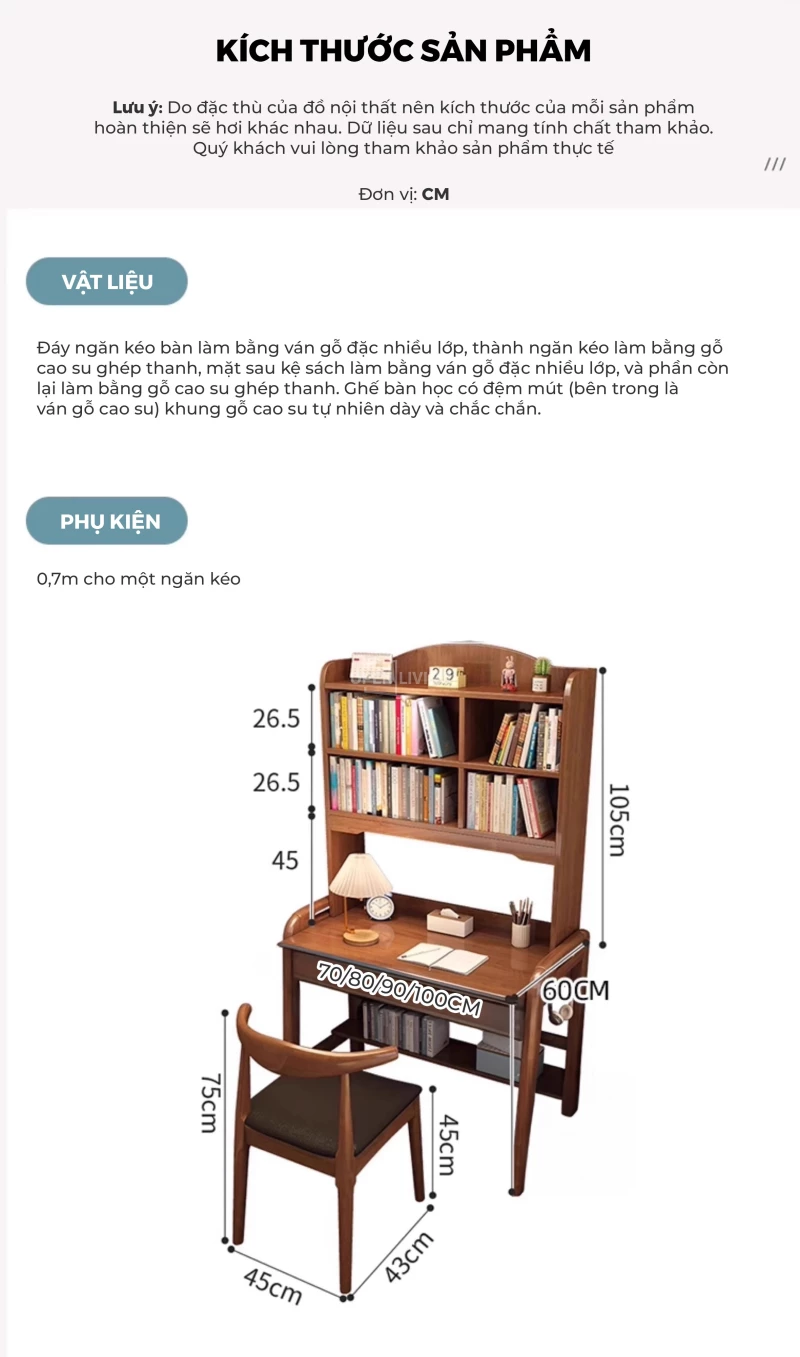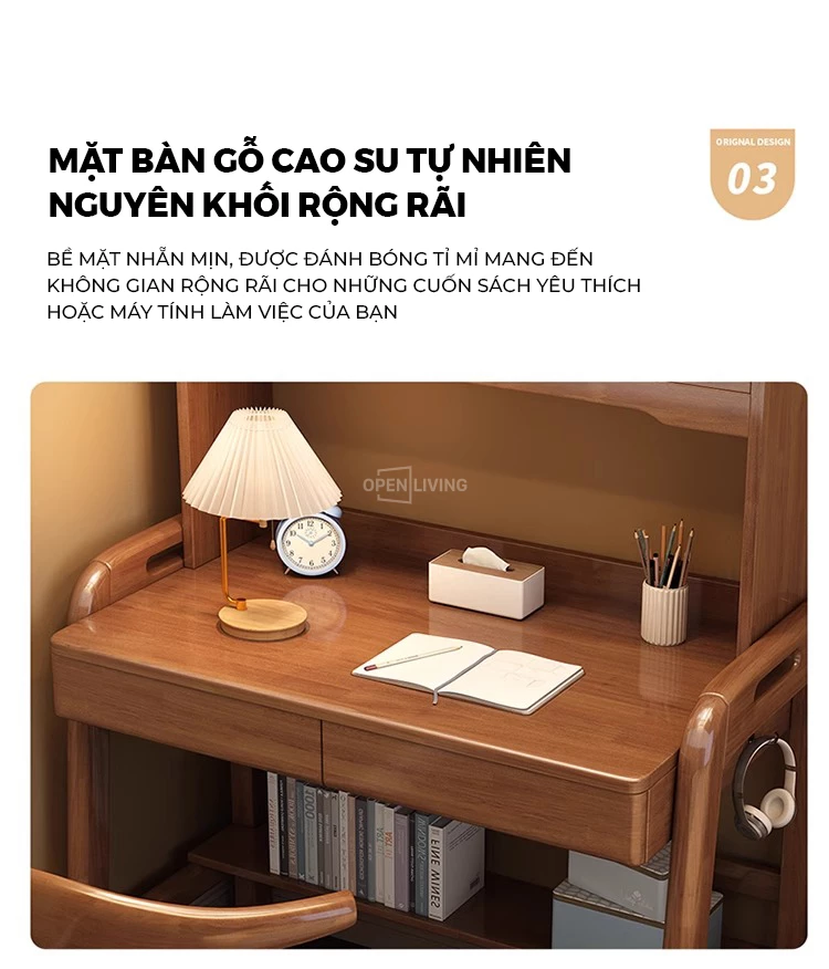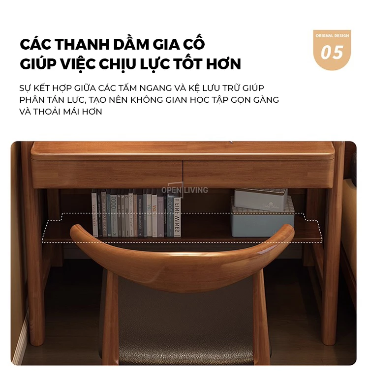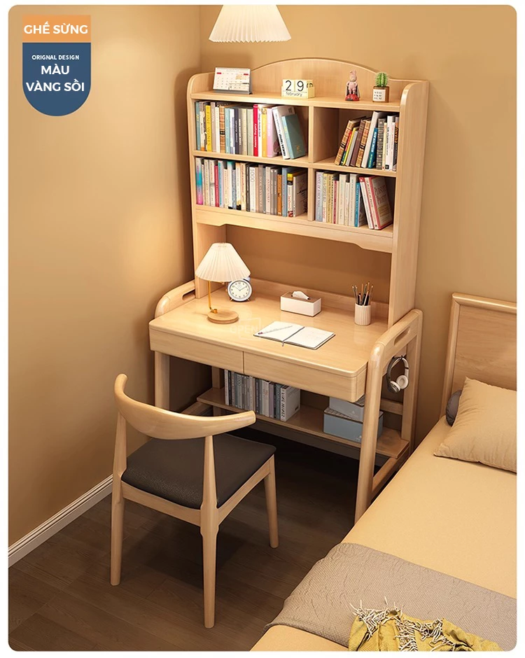 Bàn đơn kệ sách gỗ tự nhiên OP061