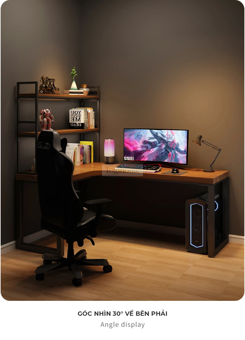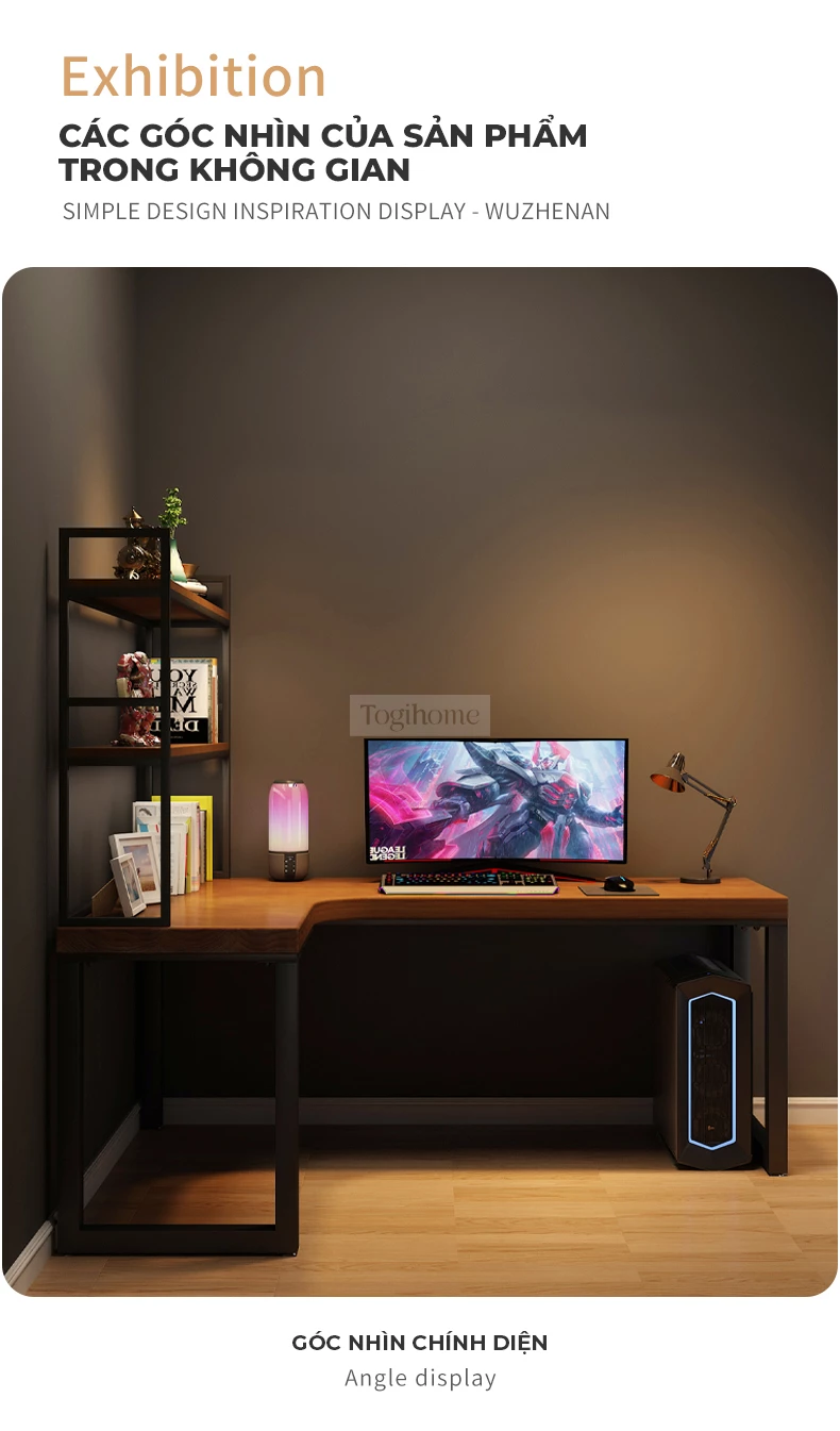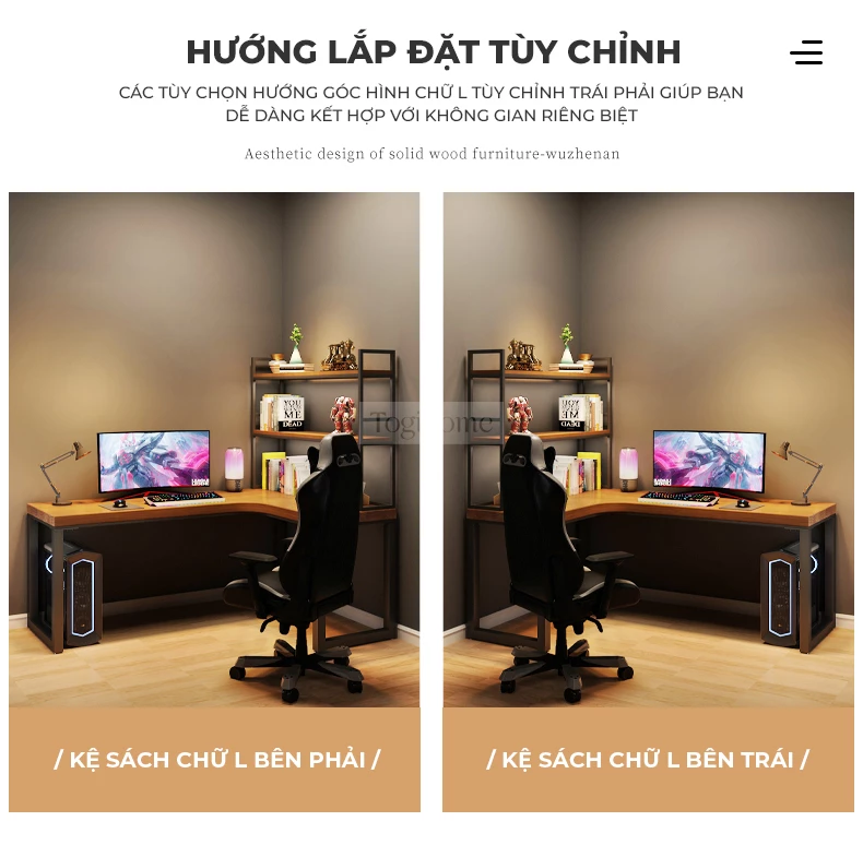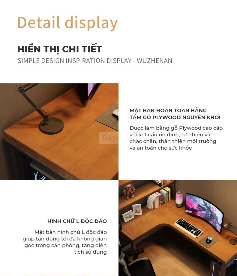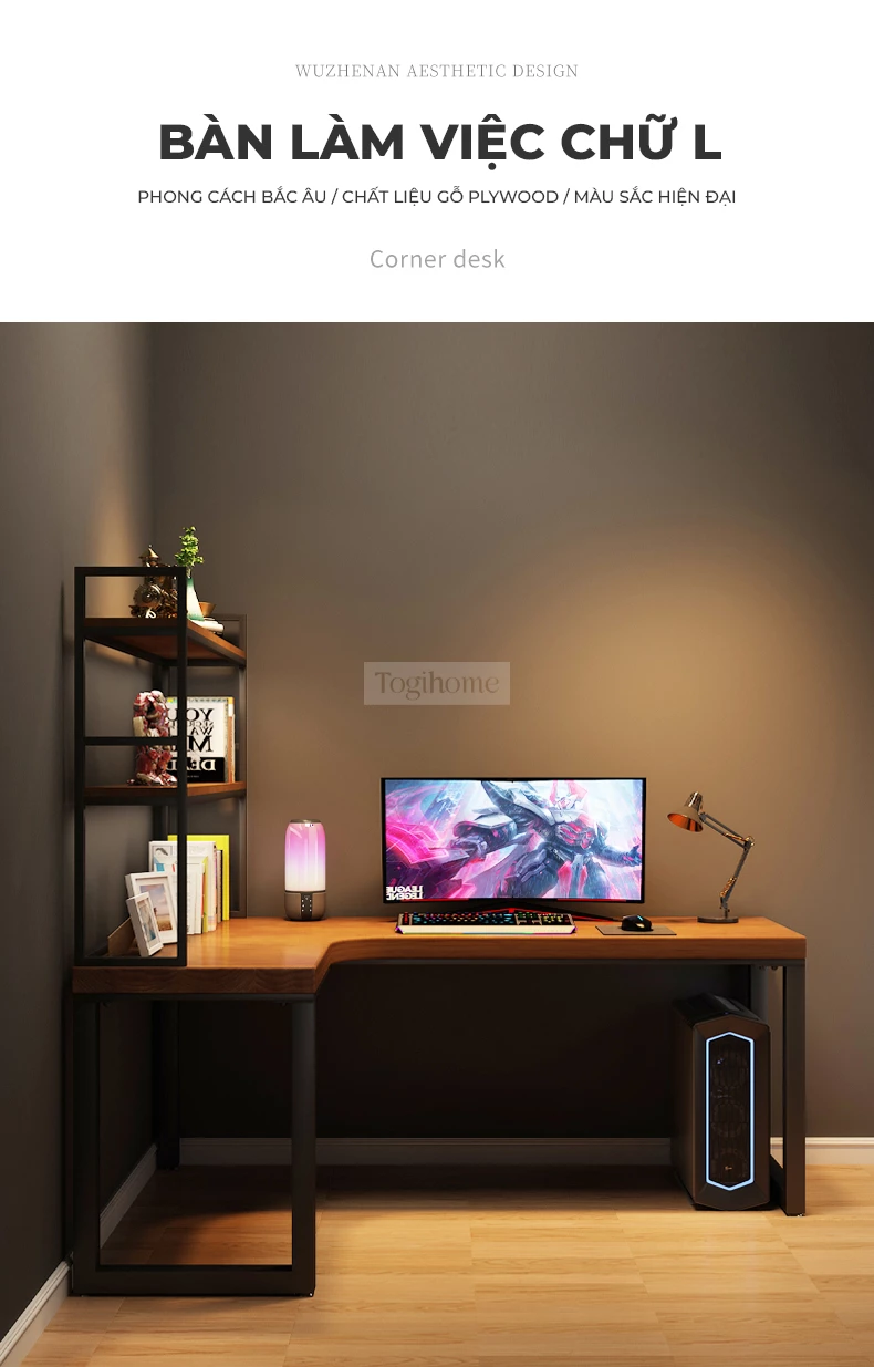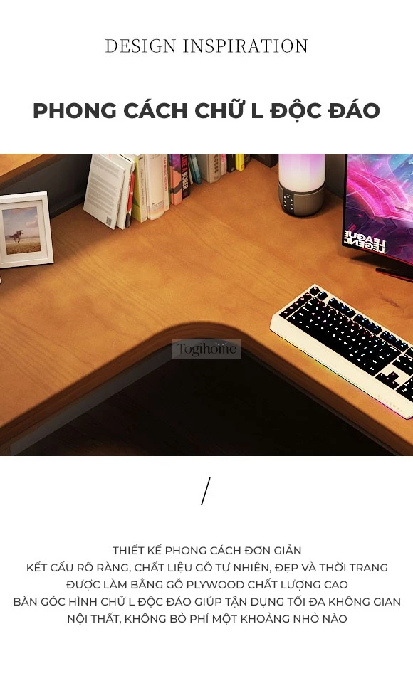 Bàn gỗ tự nhiên chữ L phong cách tối giản Togihome SD229