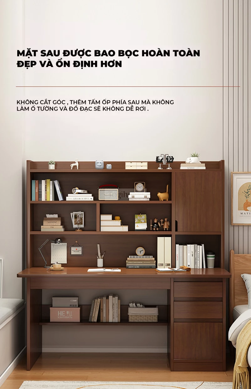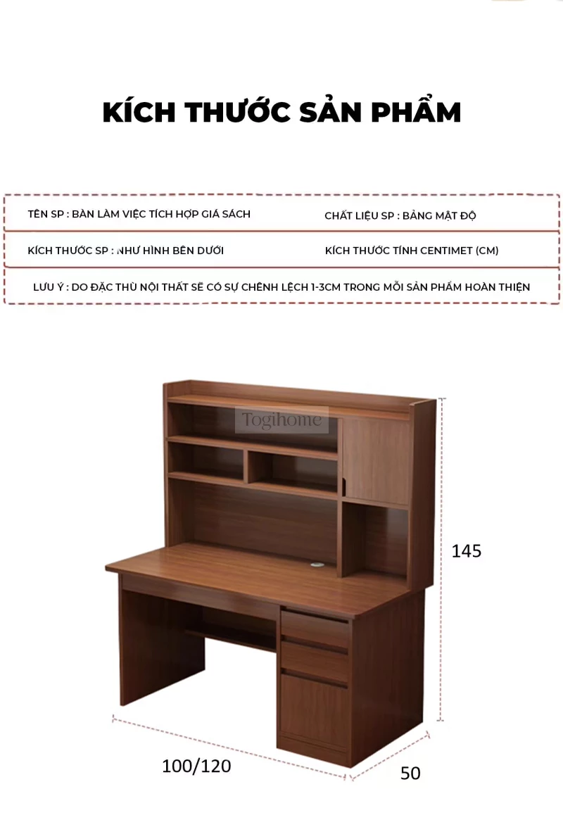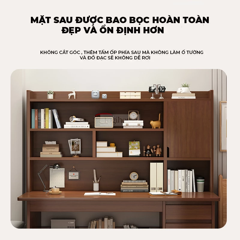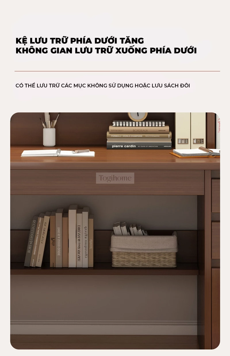 Bàn gỗ tự nhiên có giá sách lớn Togihome SD139