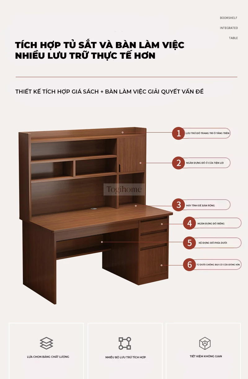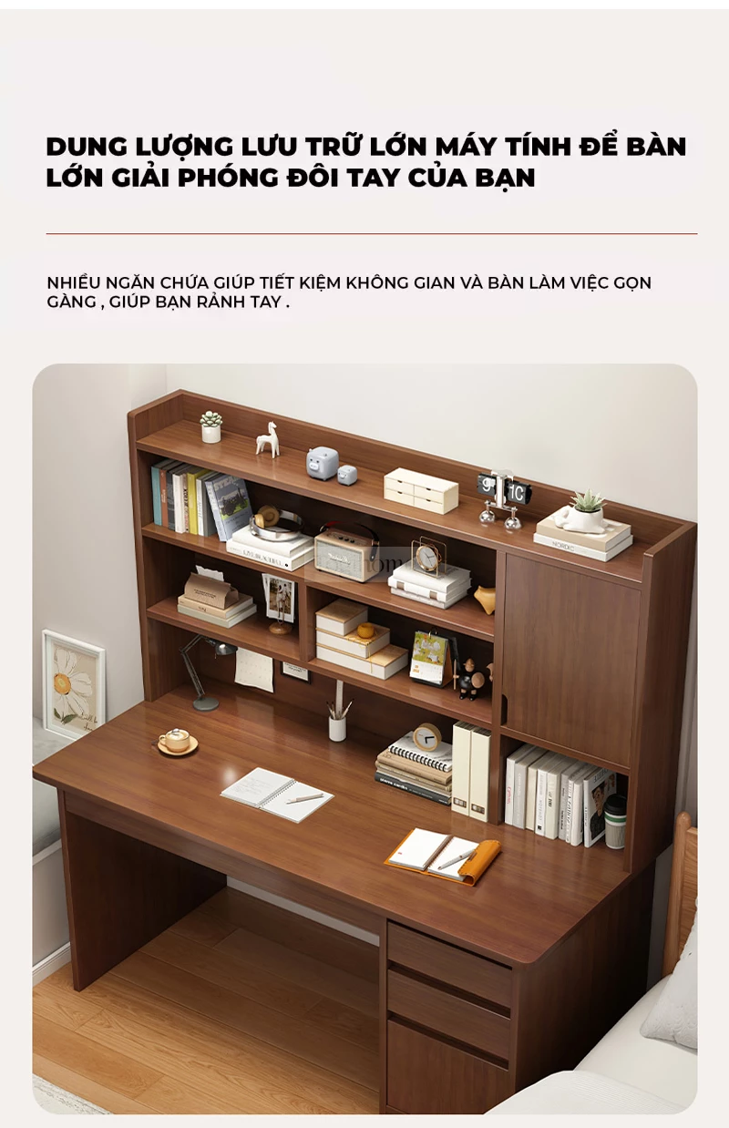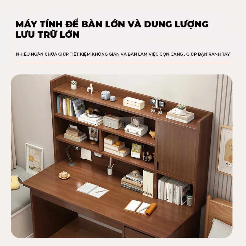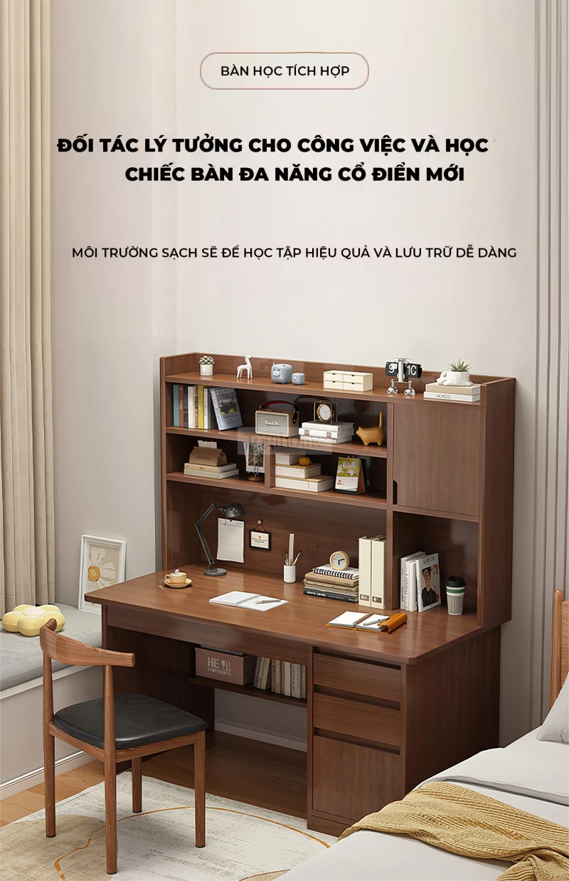 Bàn gỗ tự nhiên có giá sách lớn Togihome SD139