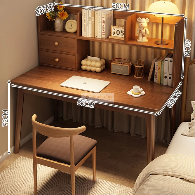 Bàn gỗ tự nhiên kết hợp kệ sách tối giản SD263