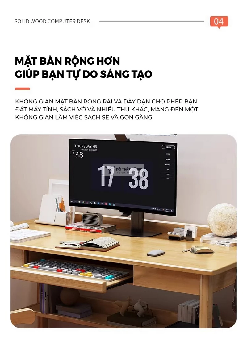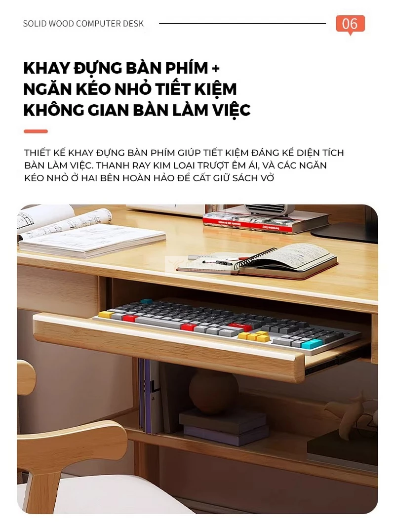 Bàn làm việc SD266 tôn vinh vẻ đẹp mộc mạc của gỗ tự nhiên. Với phong cách thiết kế tối giản, sản phẩm lược bỏ mọi chi tiết cầu kỳ, tập trung vào công năng và những đường nét tinh tế, mang lại không gian làm việc thoáng đãng.