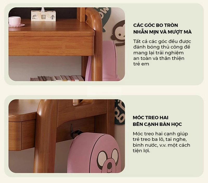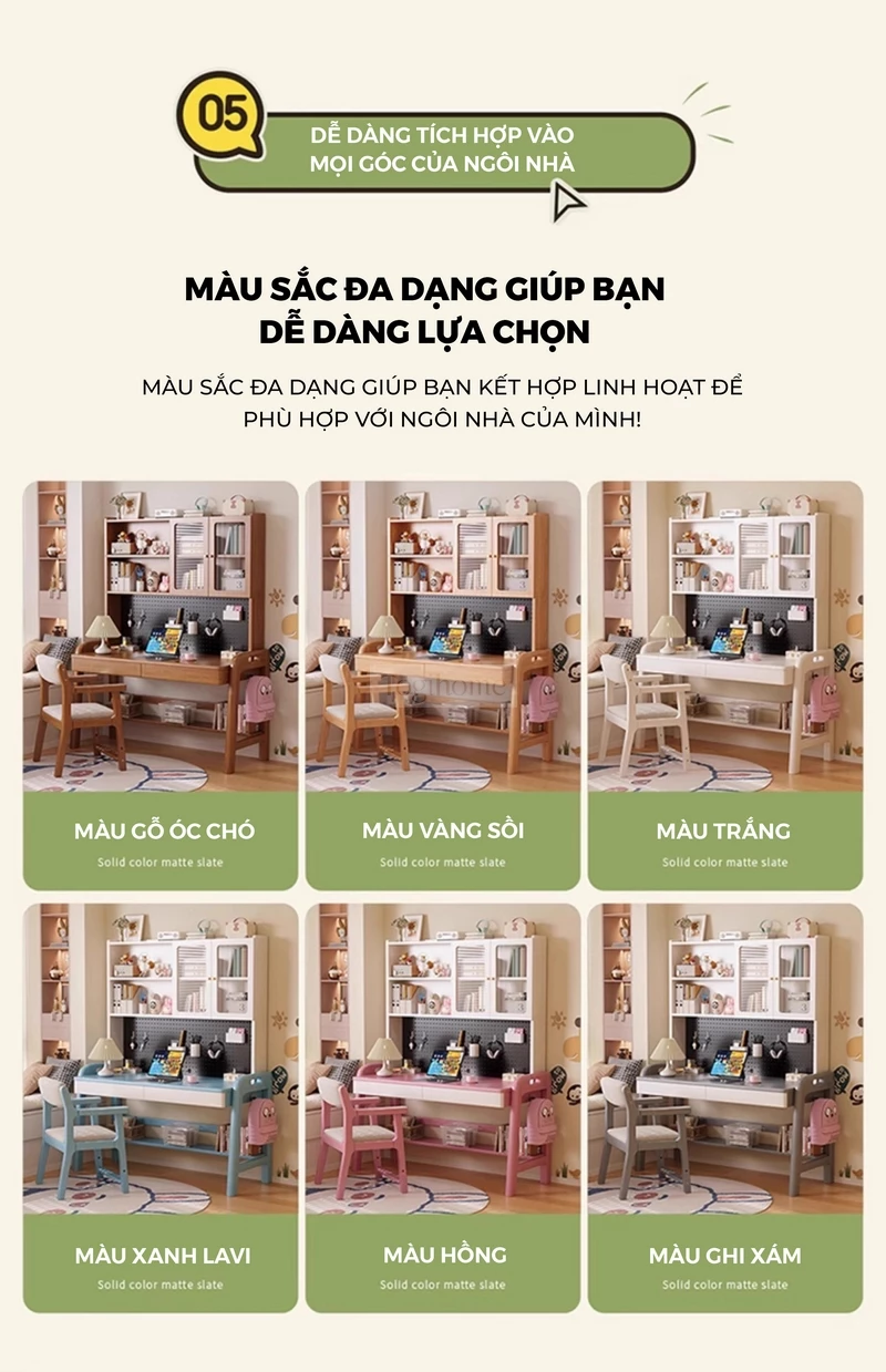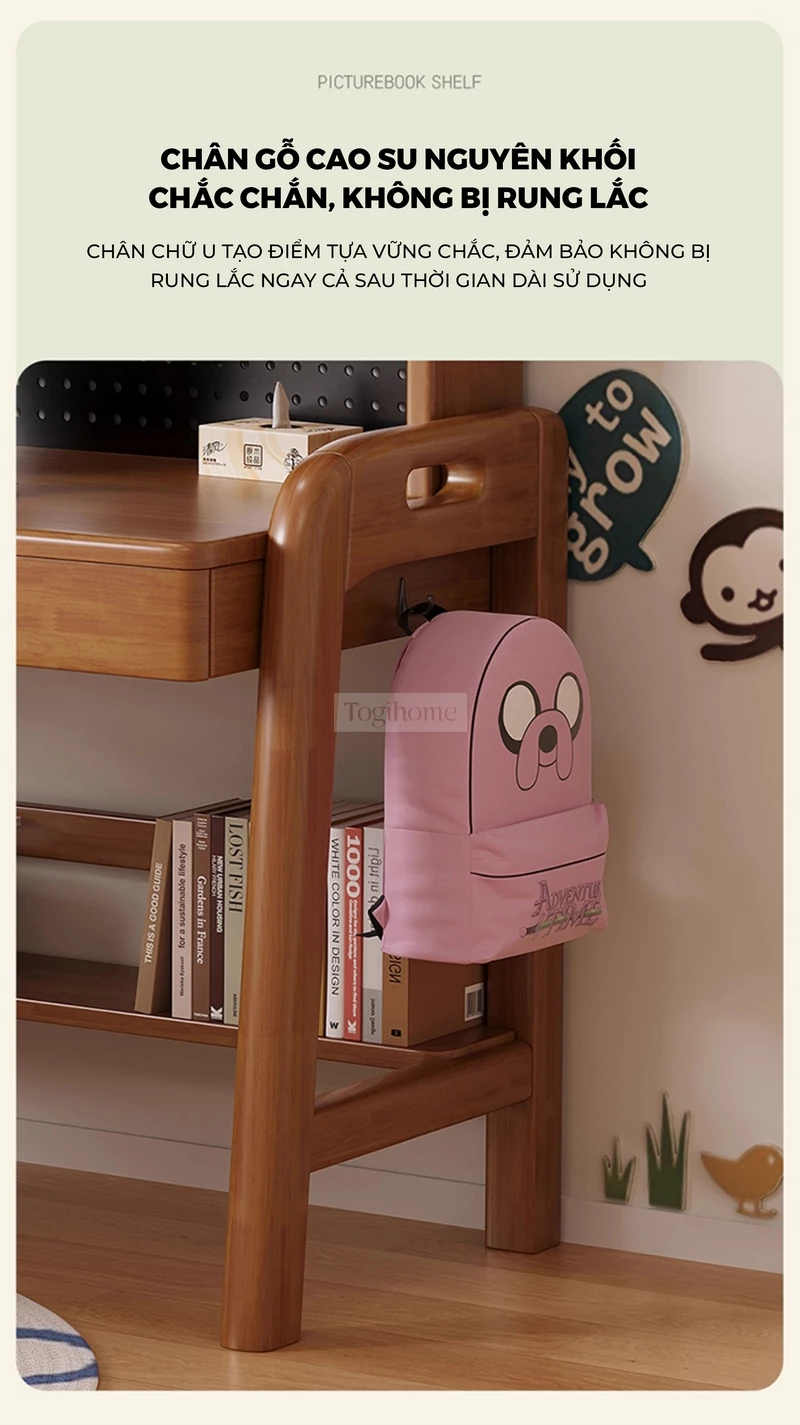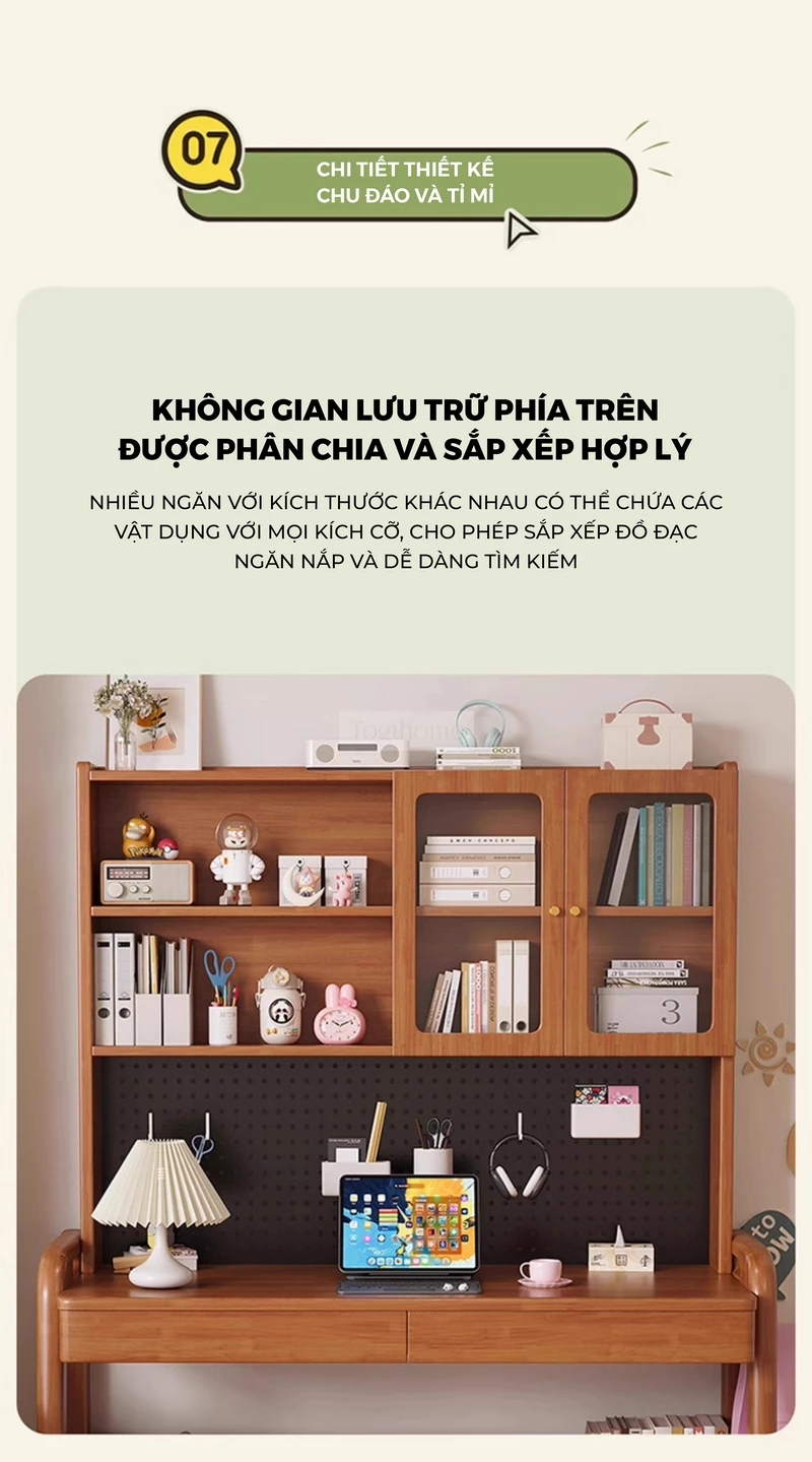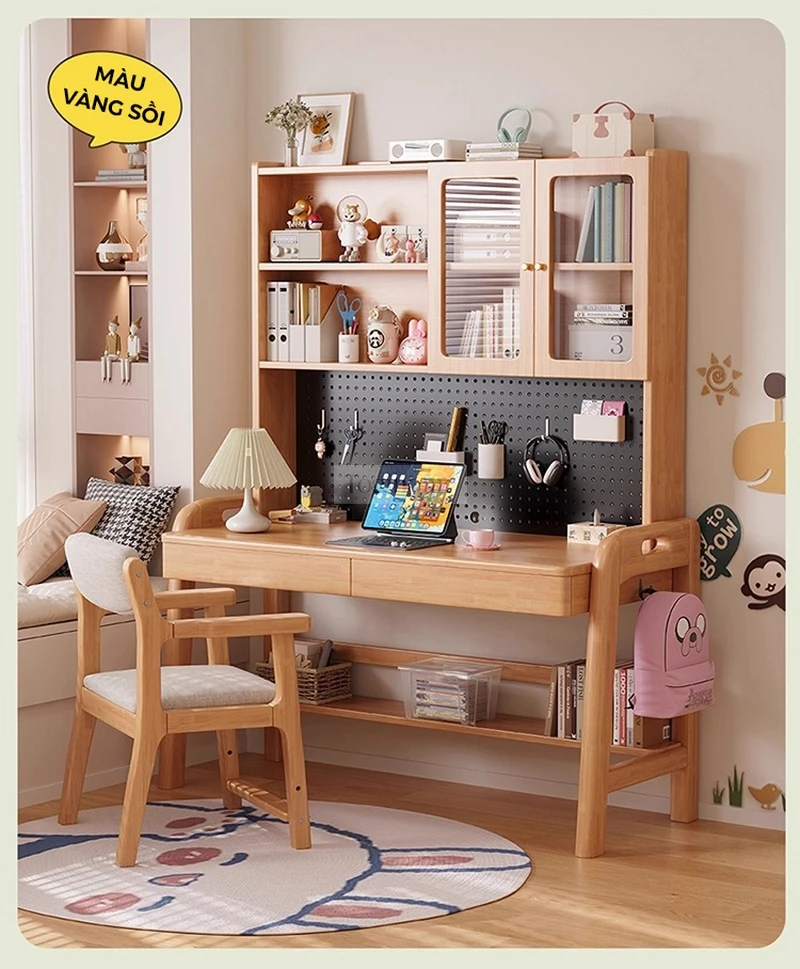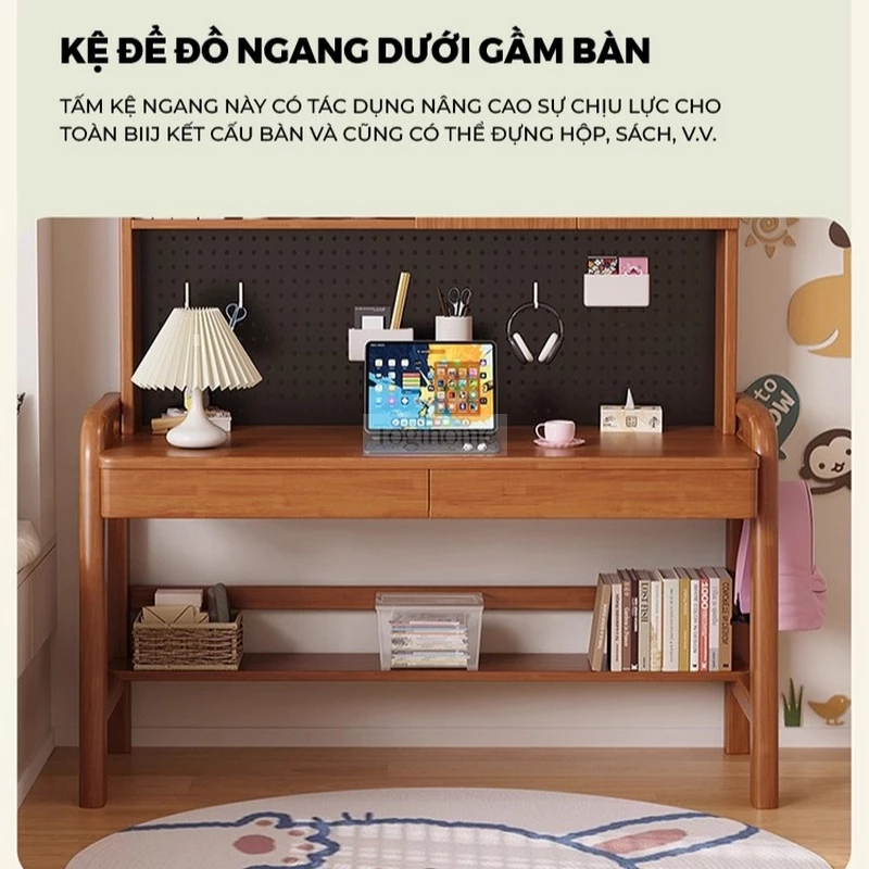 Bàn gỗ tự nhiên thiết kế thanh lịch, hiện đại tích hợp giá sách lớn Togihome SD265