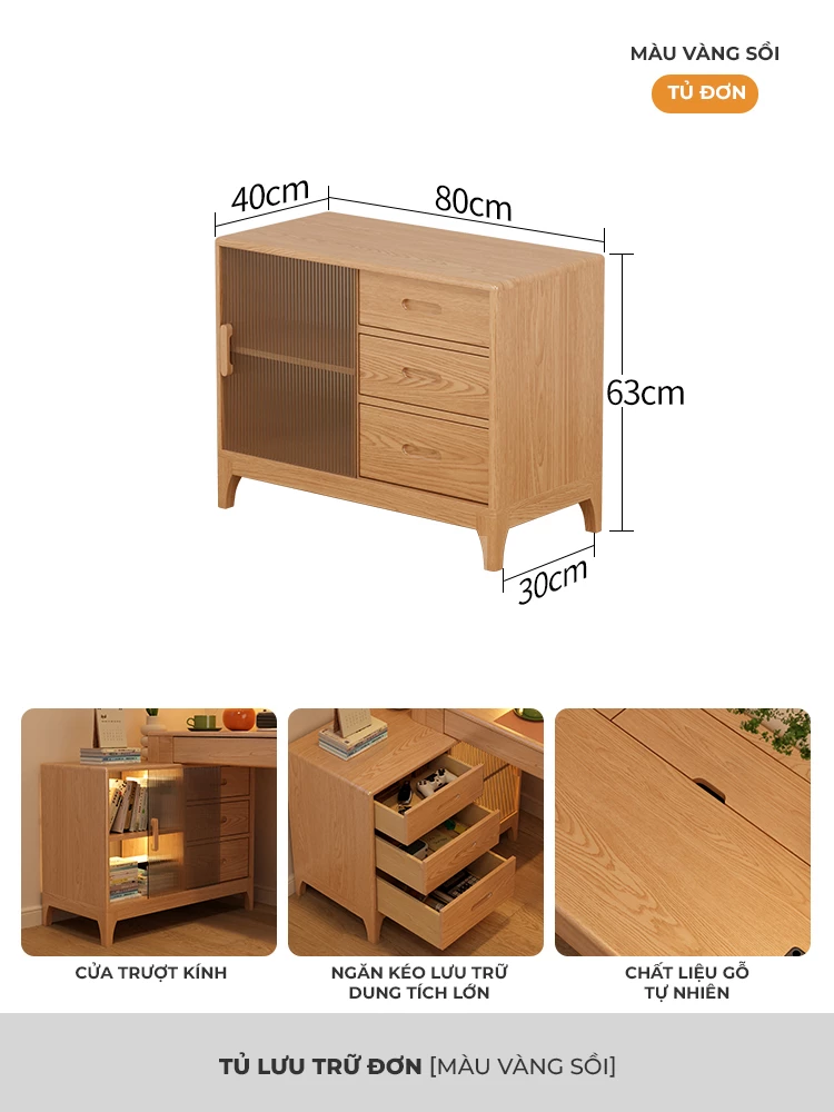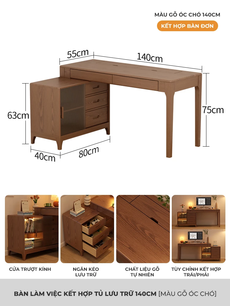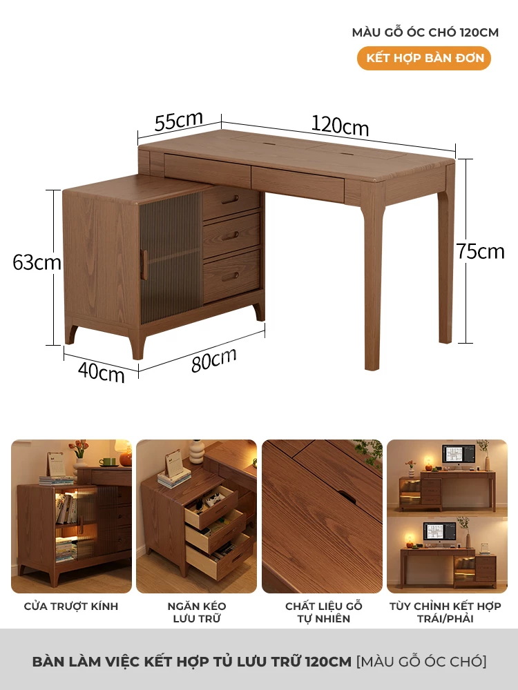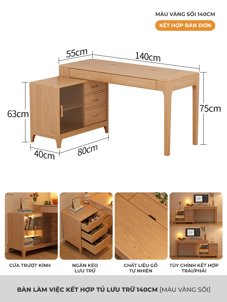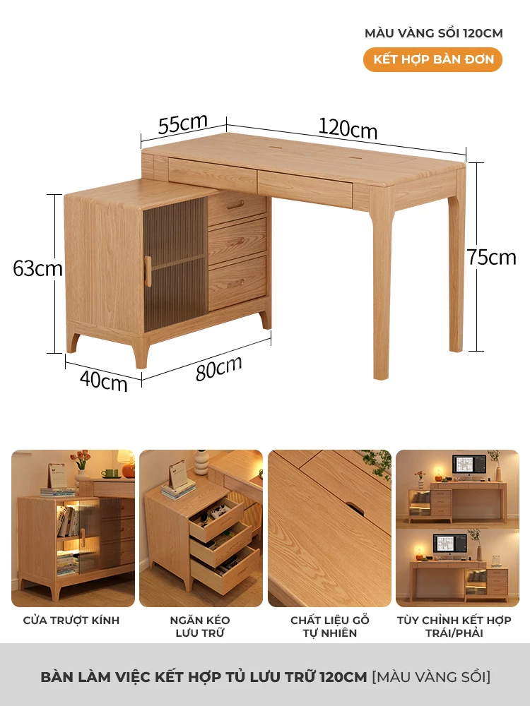 Bàn Gỗ Tự Nhiên Tích Hợp Tủ Đa Năng Togihome BGT251