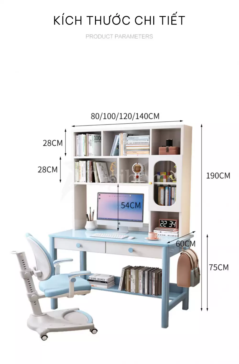 Bàn học chống gù, chống cận BCG014 với không gian lưu trữ đa dạng