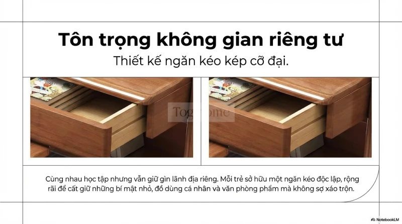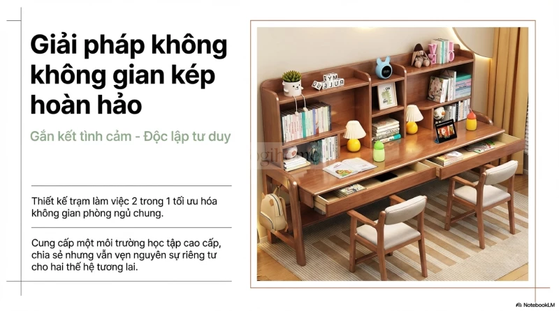 Bàn Học Đôi Gỗ Tự Nhiên Kệ Sách Vòm Cao Cấp Tích Hợp Nhiều Ngăn Lưu Trữ Cho Hai Bé BHĐ 873