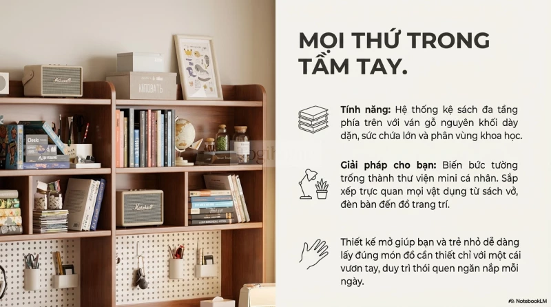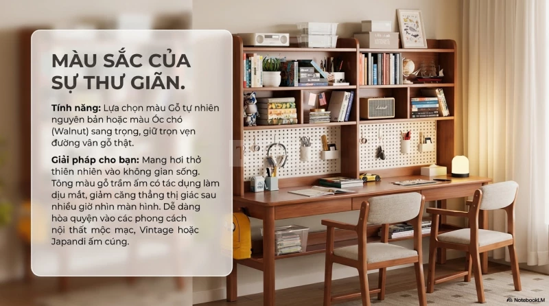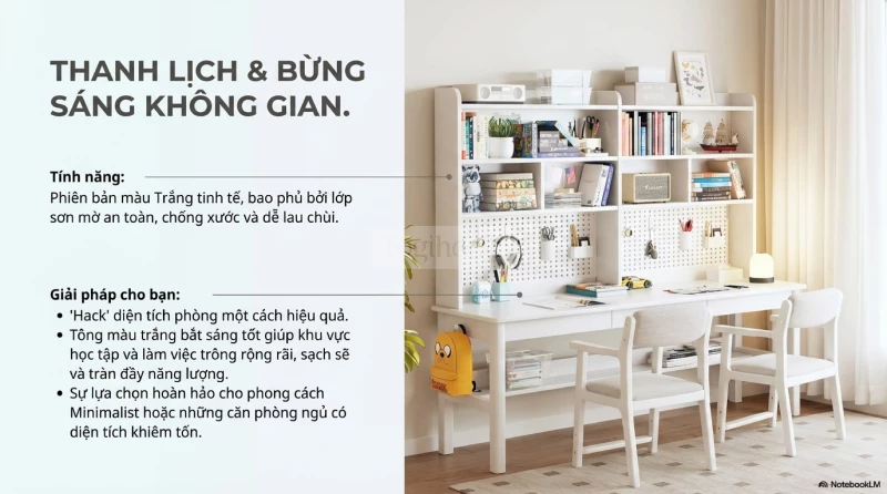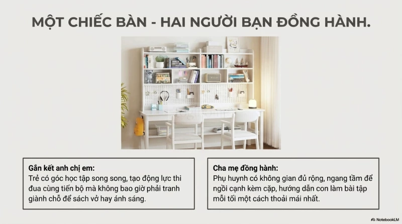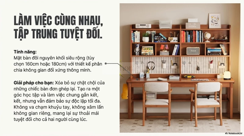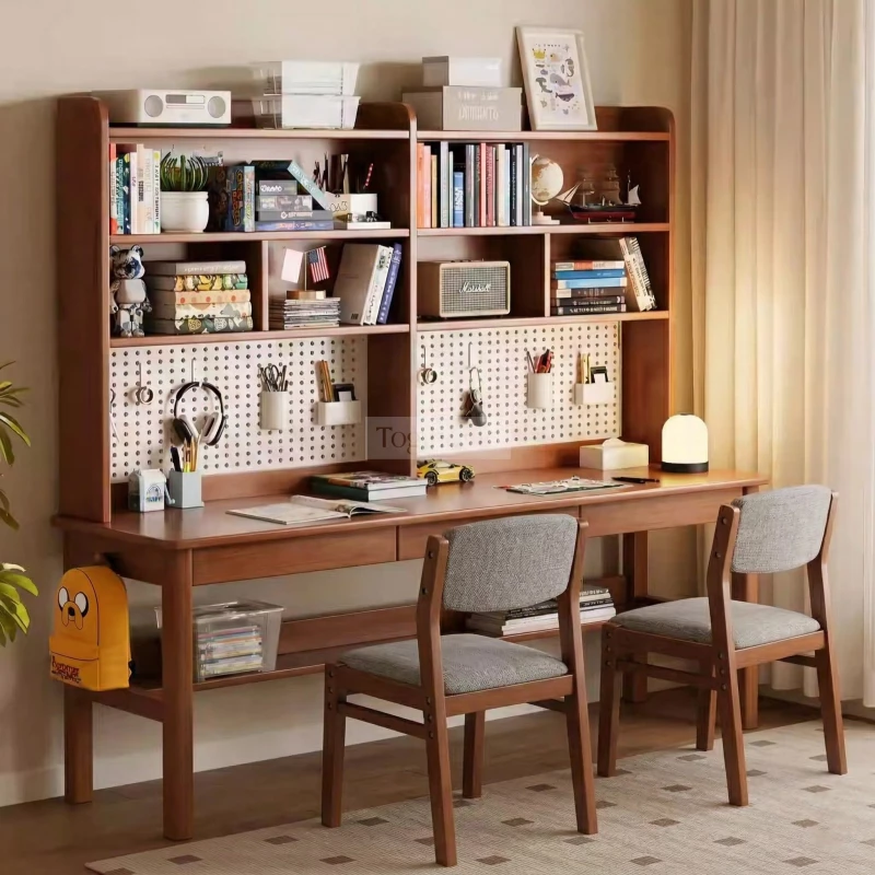Bàn Học Đôi Gỗ Tự Nhiên Kèm Kệ Sách Cao Và Bảng Treo Phụ Kiện Tối Ưu Góc Học Tập BHĐ 421