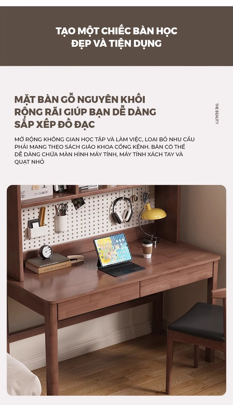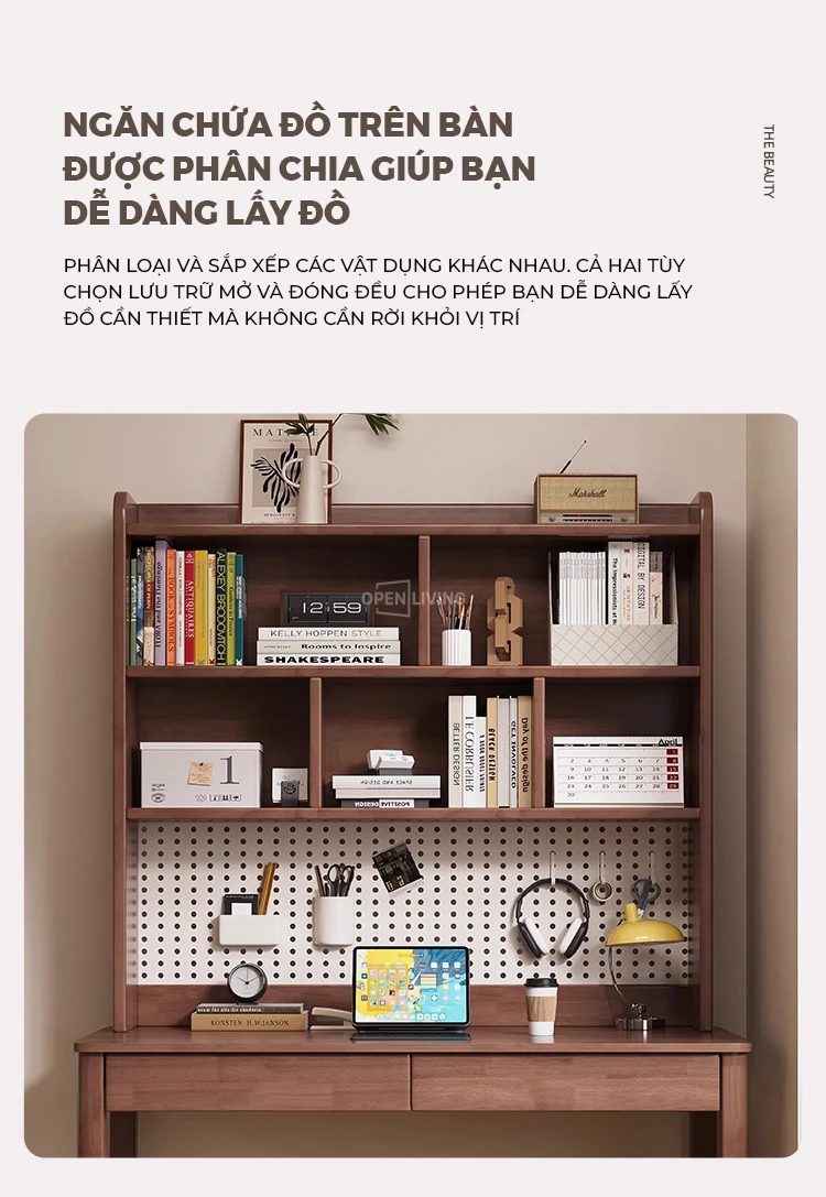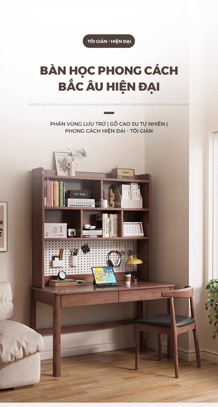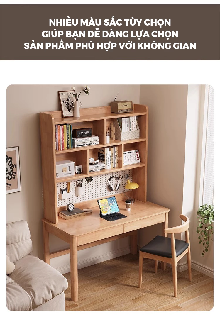Bàn học đơn kệ sách gỗ tự nhiên OP 058