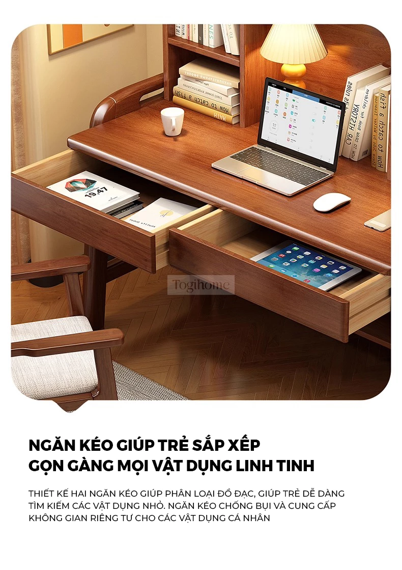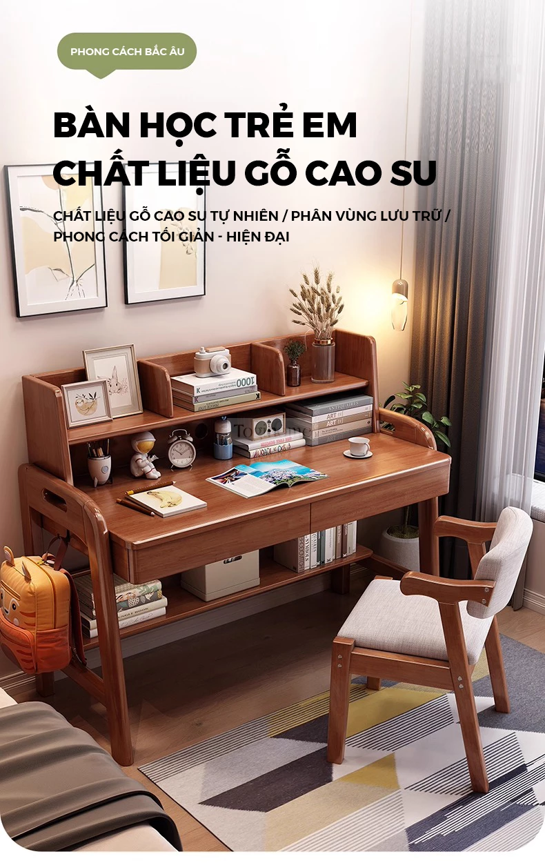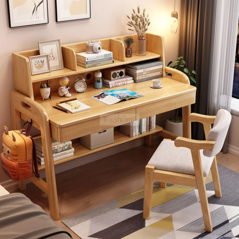 Bàn Học Gỗ Cao Su Không Gian Học Tập Gọn Gàng Có Kệ Sách BH01 Togihome
