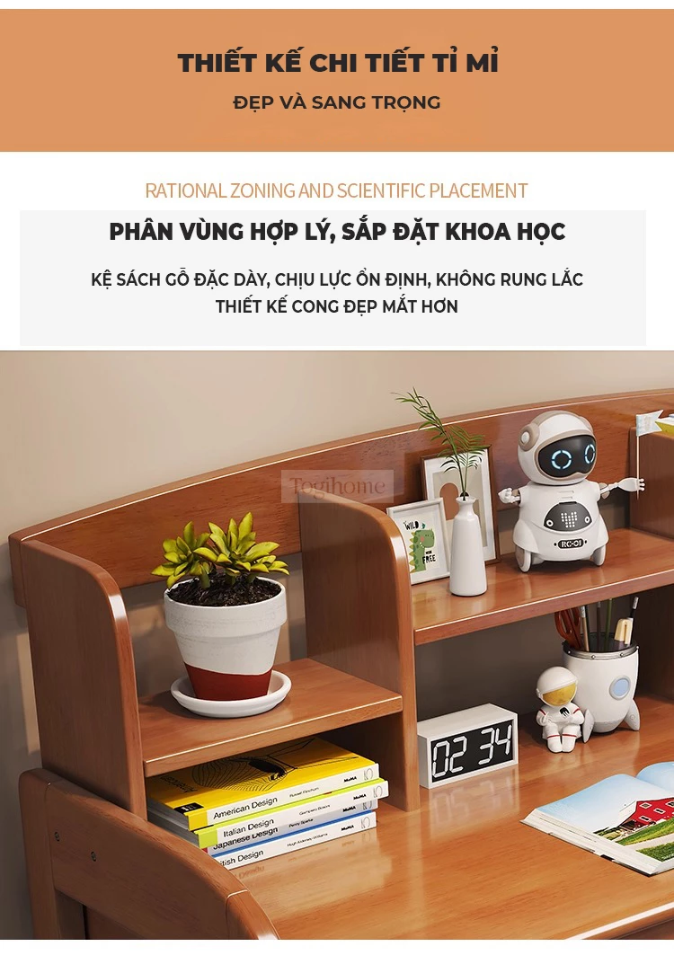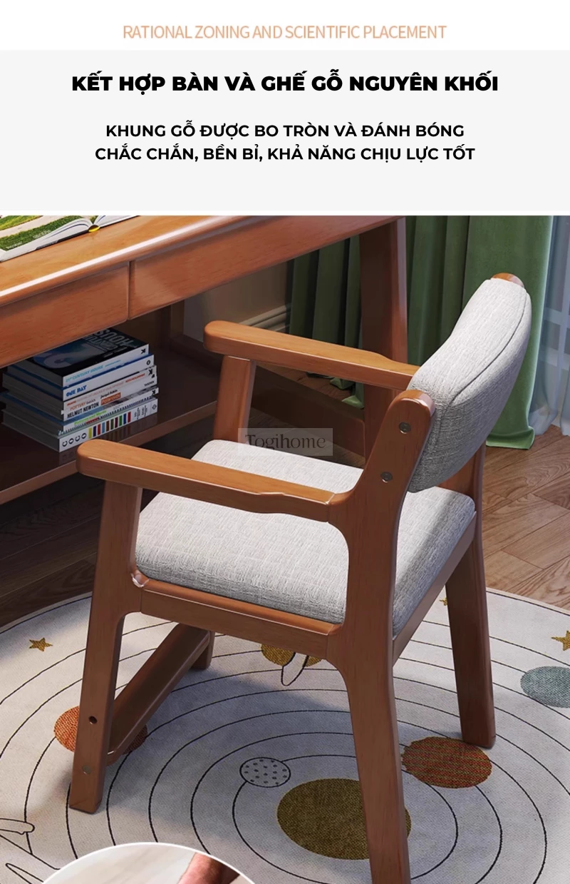 Bàn Học Gỗ Cao Su Tự Nhiên Togismart BHS-326 – Bàn Học Sinh Bo Góc An Toàn