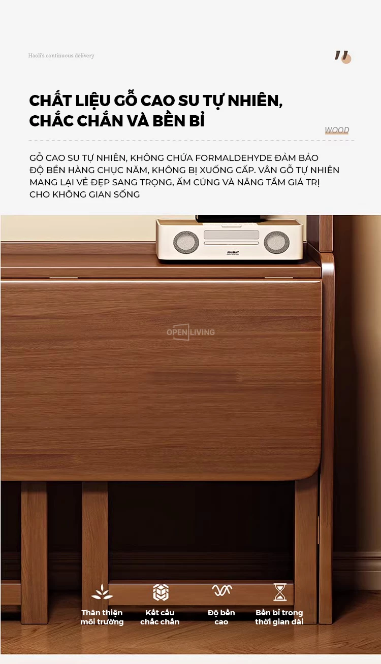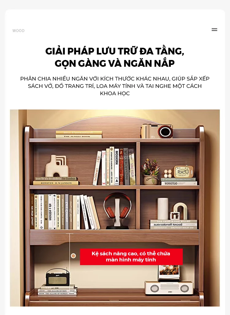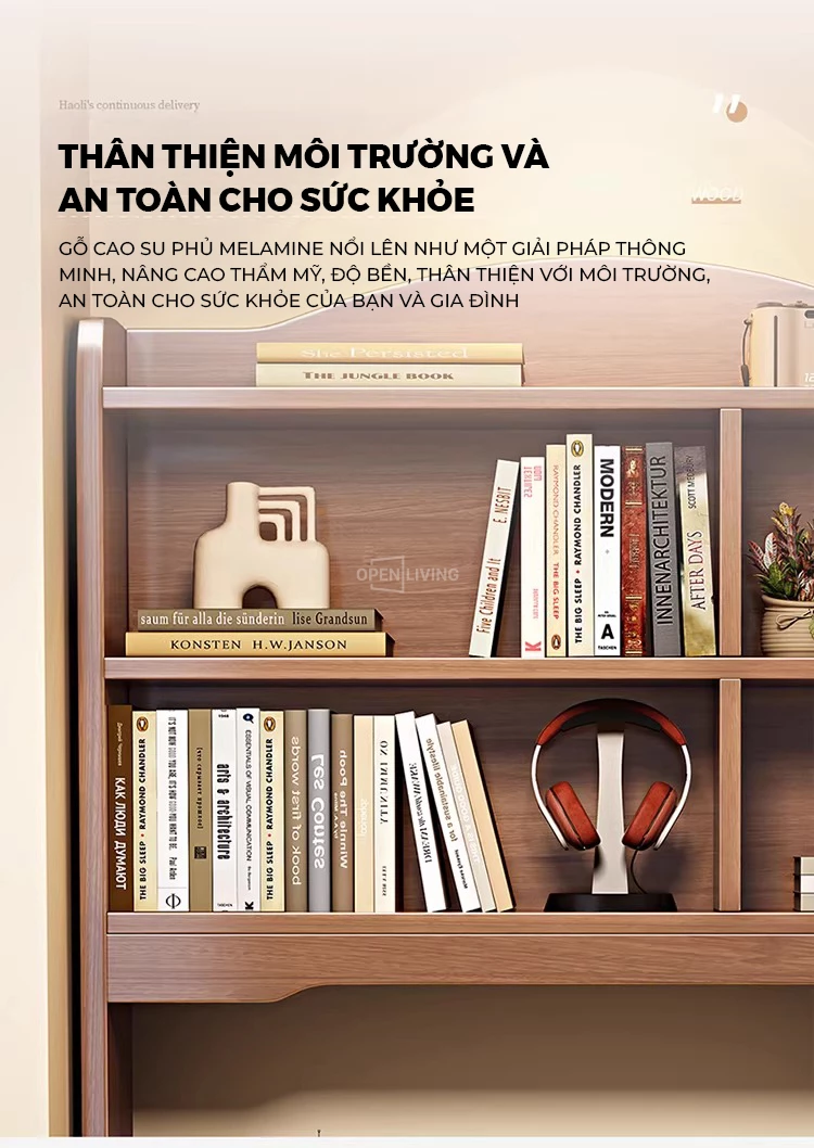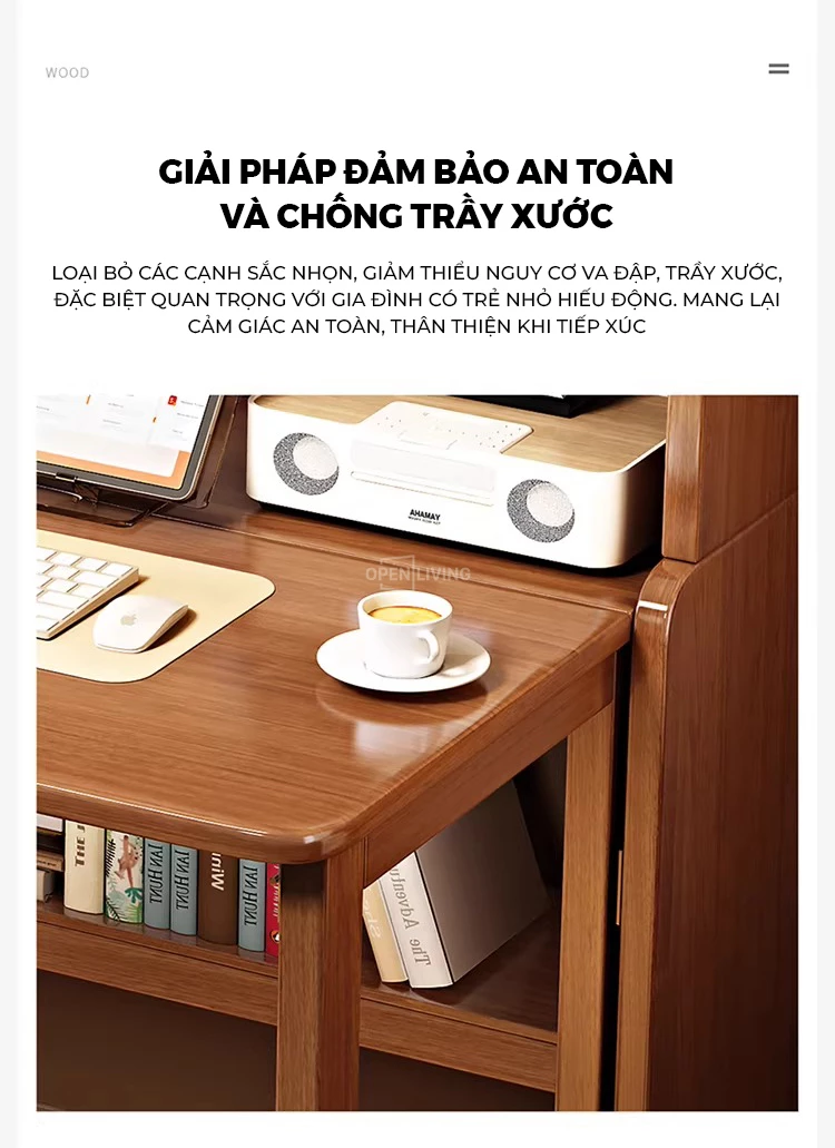 Bàn Học Gỗ Tự Nhiên Cao Cấp Openliving BLM364 – Bàn Gấp Kèm Kệ Sách, Chắc Chắn, Tiết Kiệm Diện Tích Căn Hộ Nhỏ