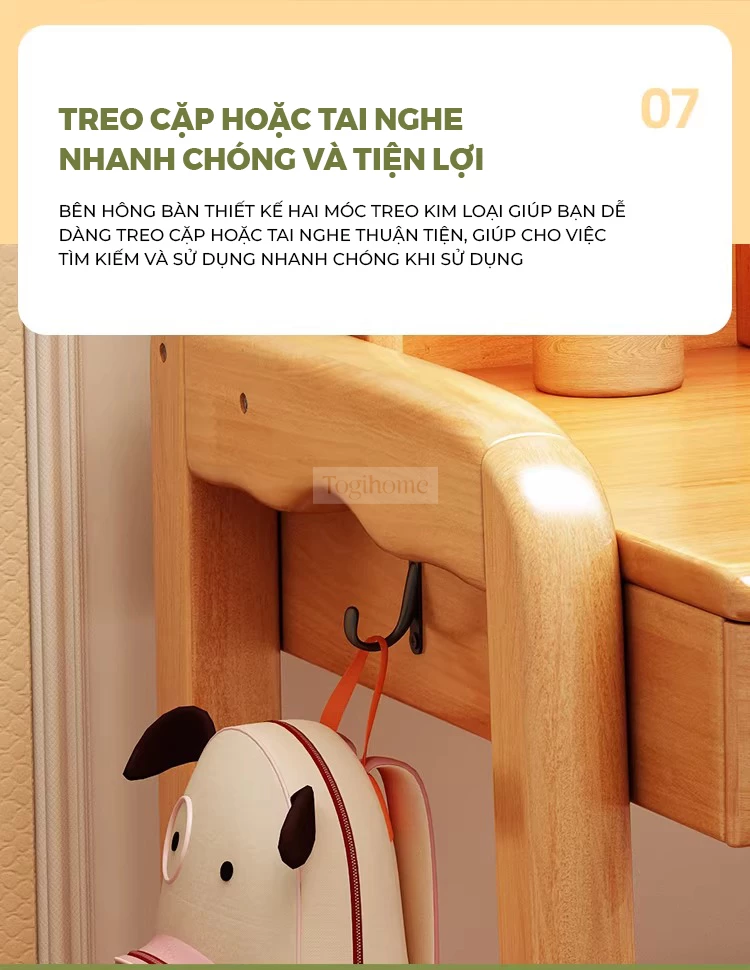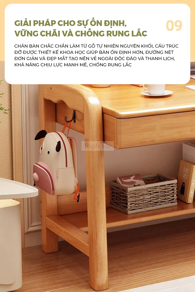 Bàn Học Gỗ Tự Nhiên Togismart Có Kệ Sách Phía Trên Cho Trẻ Em - Tối Ưu Góc Học Tập - BTN498