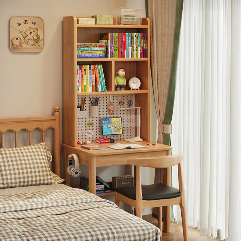 Bàn Học Sinh Gỗ Tự Nhiên Kèm Giá Sách Cao Nhiều Tầng Và Bảng Treo Pegboard Lưu Trữ Thông Minh Togihome BH05