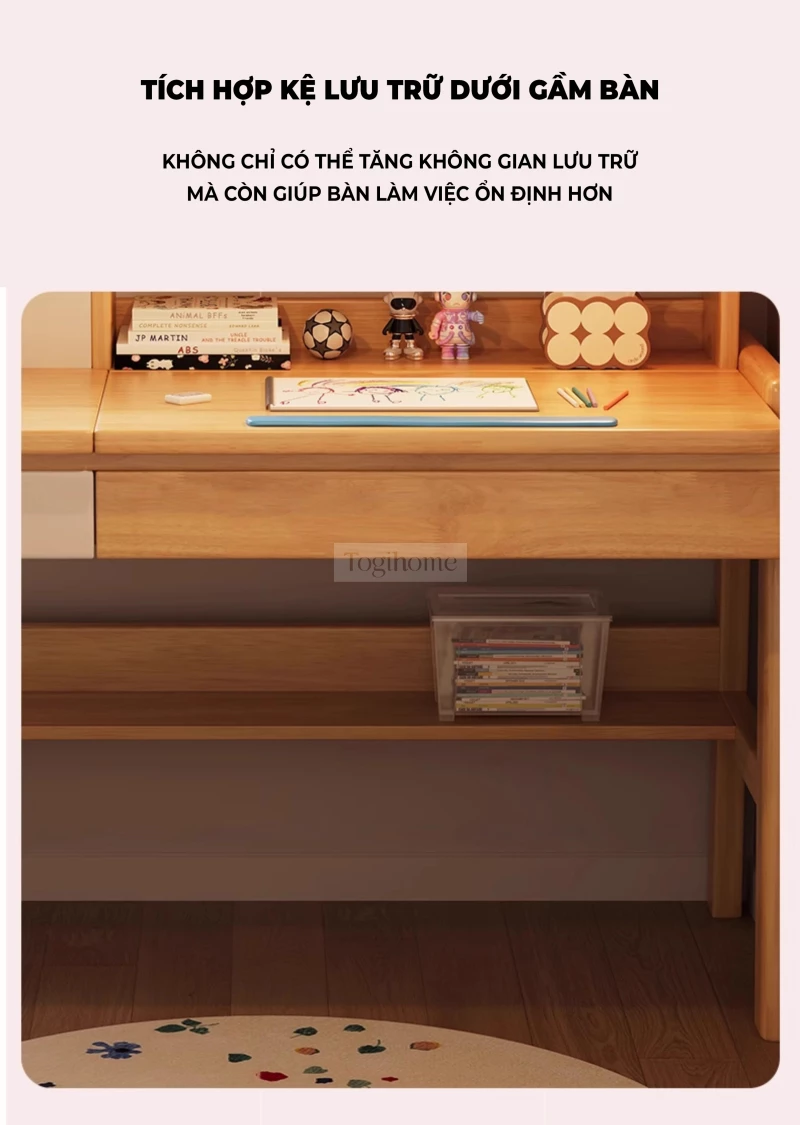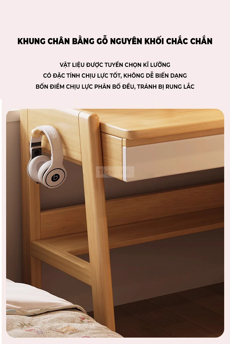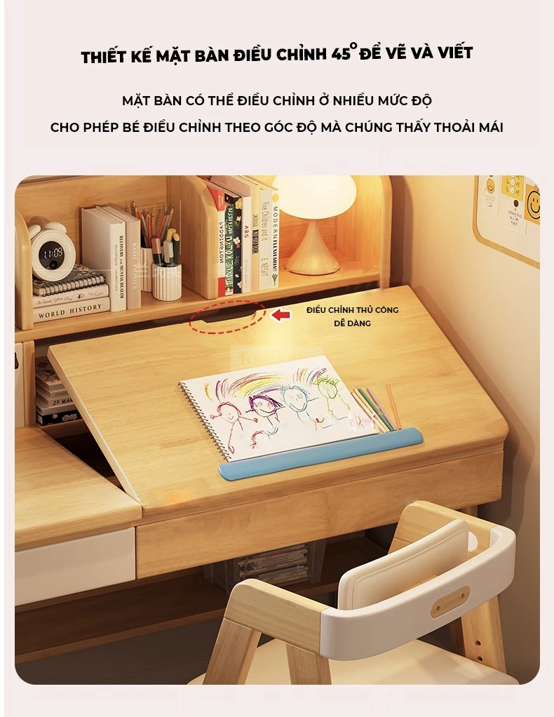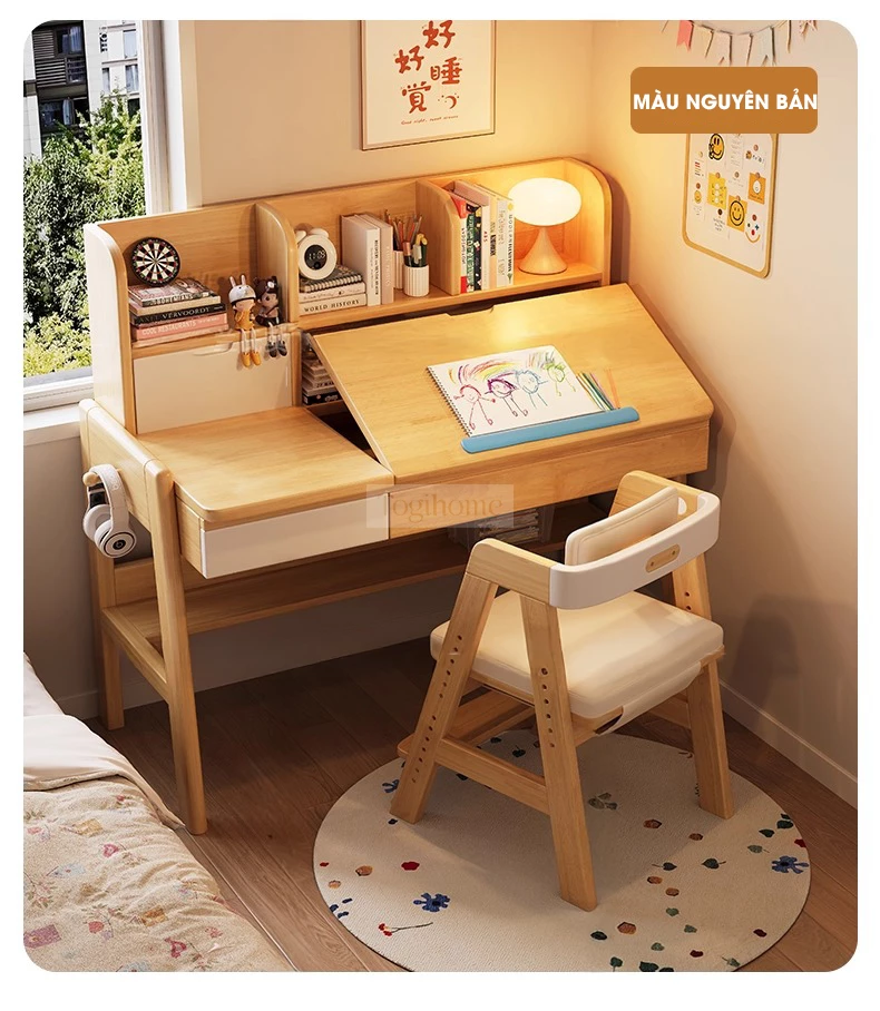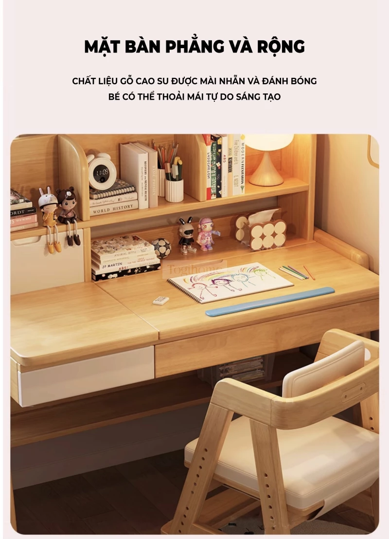 Bàn Học Trẻ Em Chống Gù Gỗ Cao Su Tự Nhiên Togismart BHT-228 – Bàn Học Điều Chỉnh Góc Viết 45°