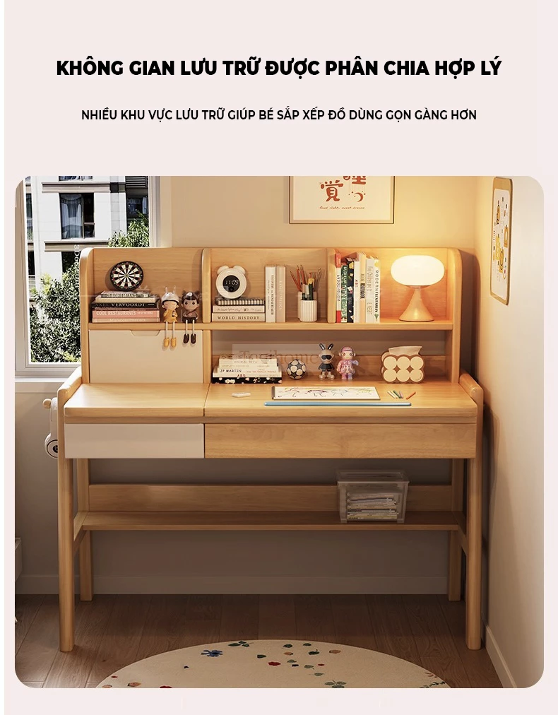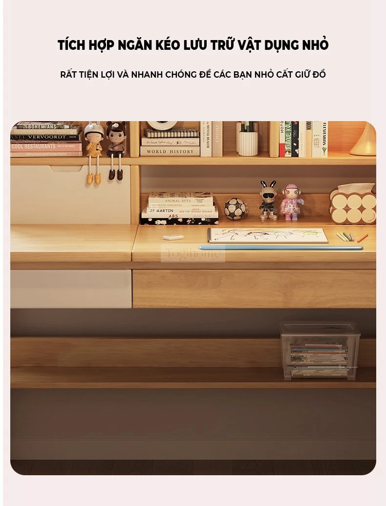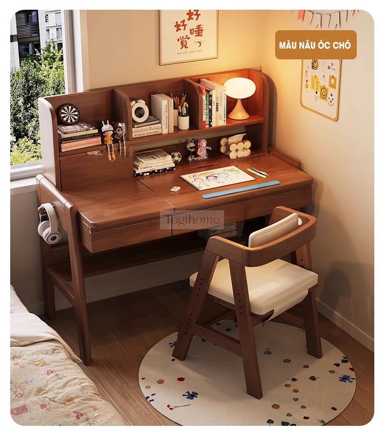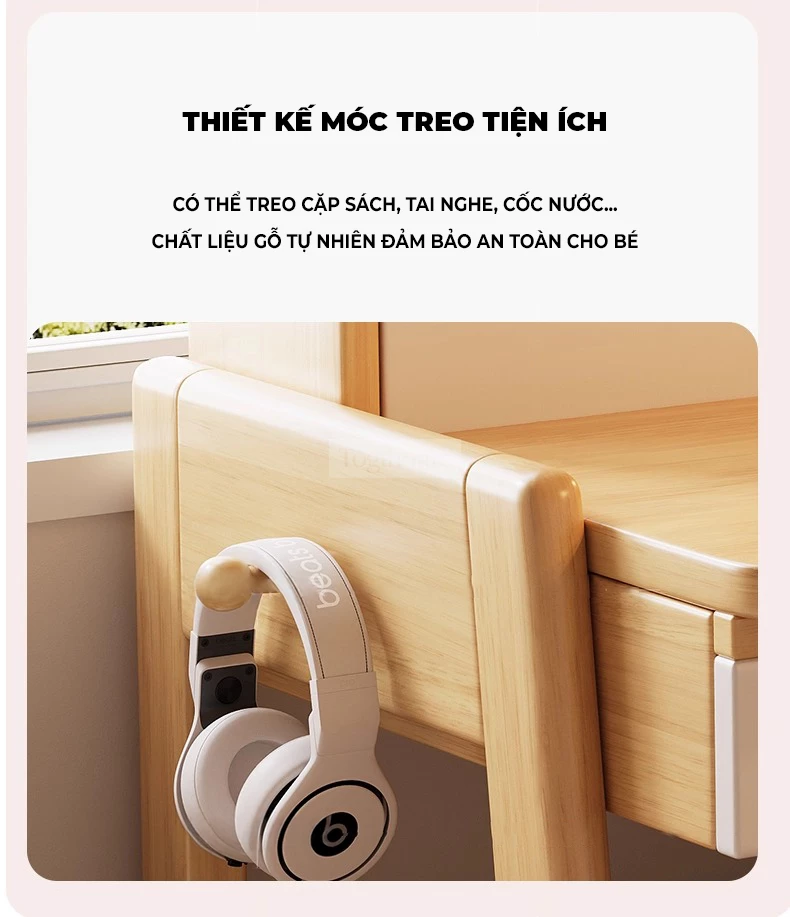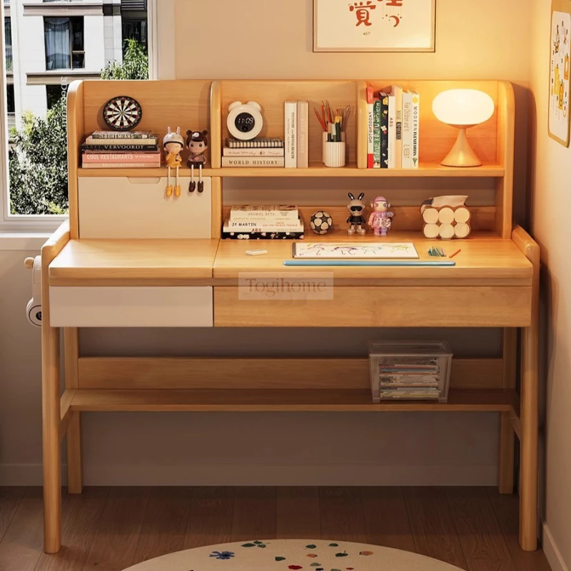 Bàn Học Trẻ Em Chống Gù Gỗ Cao Su Tự Nhiên Togismart BHT-228 – Bàn Học Điều Chỉnh Góc Viết 45°