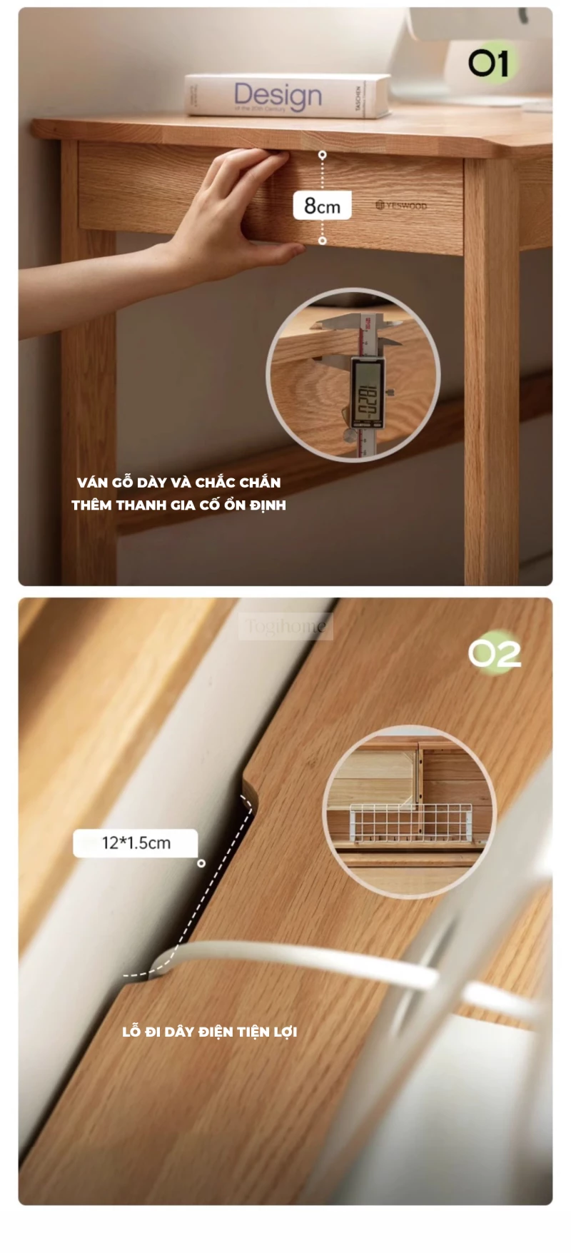 Bàn Làm Việc Bàn Học Gỗ Tự Nhiên Togismart BTG 078