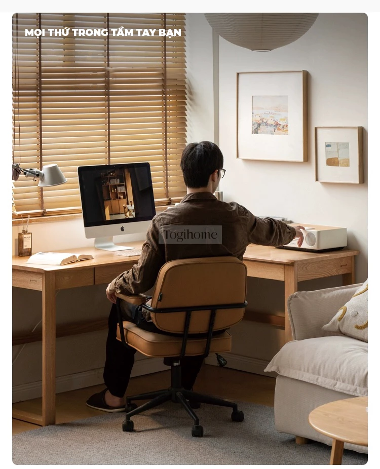 Bàn Làm Việc Bàn Học Gỗ Tự Nhiên Togismart BTG 078 là giải pháp nội thất lý tưởng, kết hợp hài hòa giữa vẻ đẹp tự nhiên, sự bền vững và phong cách tối giản hiện đại. Chiếc bàn này được chế tác từ gỗ tự nhiên cao cấp, mang lại độ chắc chắn tuyệt đối và sự ấm áp, thư thái cho không gian làm việc hoặc học tập. BTG 078 nổi bật với thiết kế thanh lịch, mặt bàn rộng rãi, cung cấp đủ không gian cho máy tính, sách vở và các vật dụng cần thiết, đồng thời thường tích hợp các ngăn kéo hoặc hộc tủ nhỏ được bố trí thông minh. Thiết kế này không chỉ giúp bạn giữ cho mặt bàn luôn ngăn nắp, gọn gàng mà còn tạo nên một không gian làm việc truyền cảm hứng, thúc đẩy sự tập trung và sáng tạo.