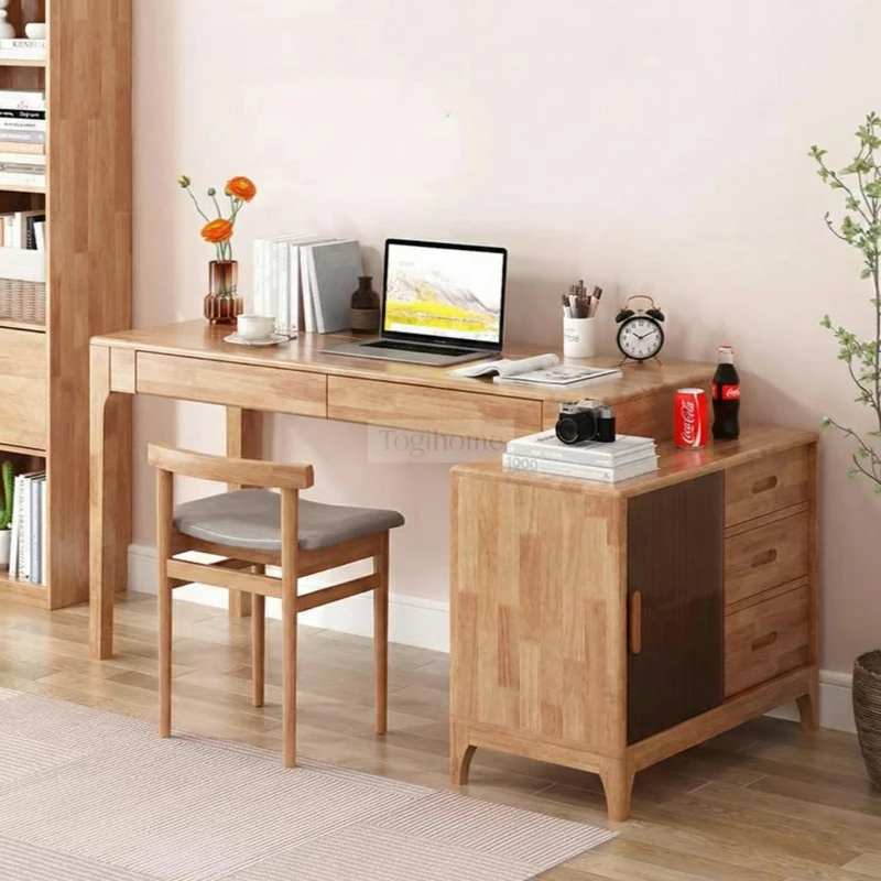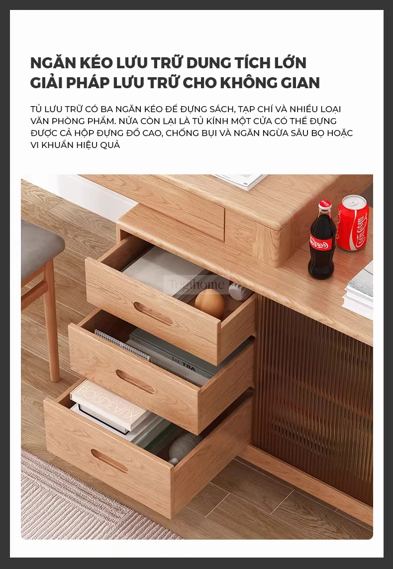 Bàn Làm Việc Gỗ Cao Su Tự Nhiên Togihome Mở Rộng Xoay 3 Ngăn Kéo Có Hộp Giấu Dây Điện - Mã BLV322