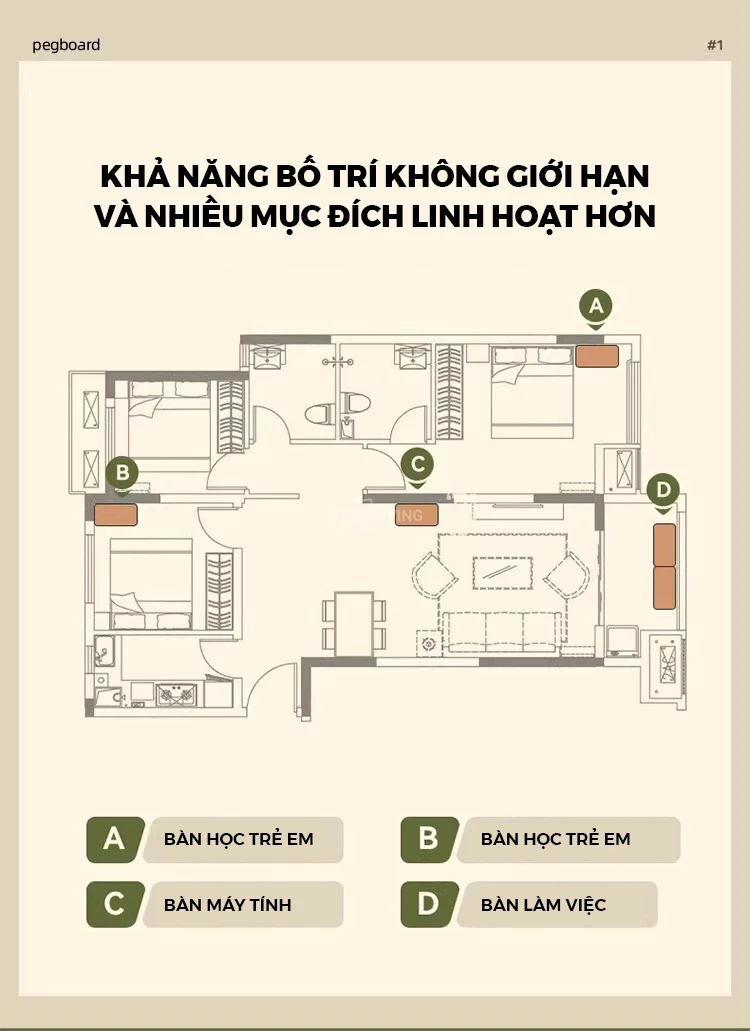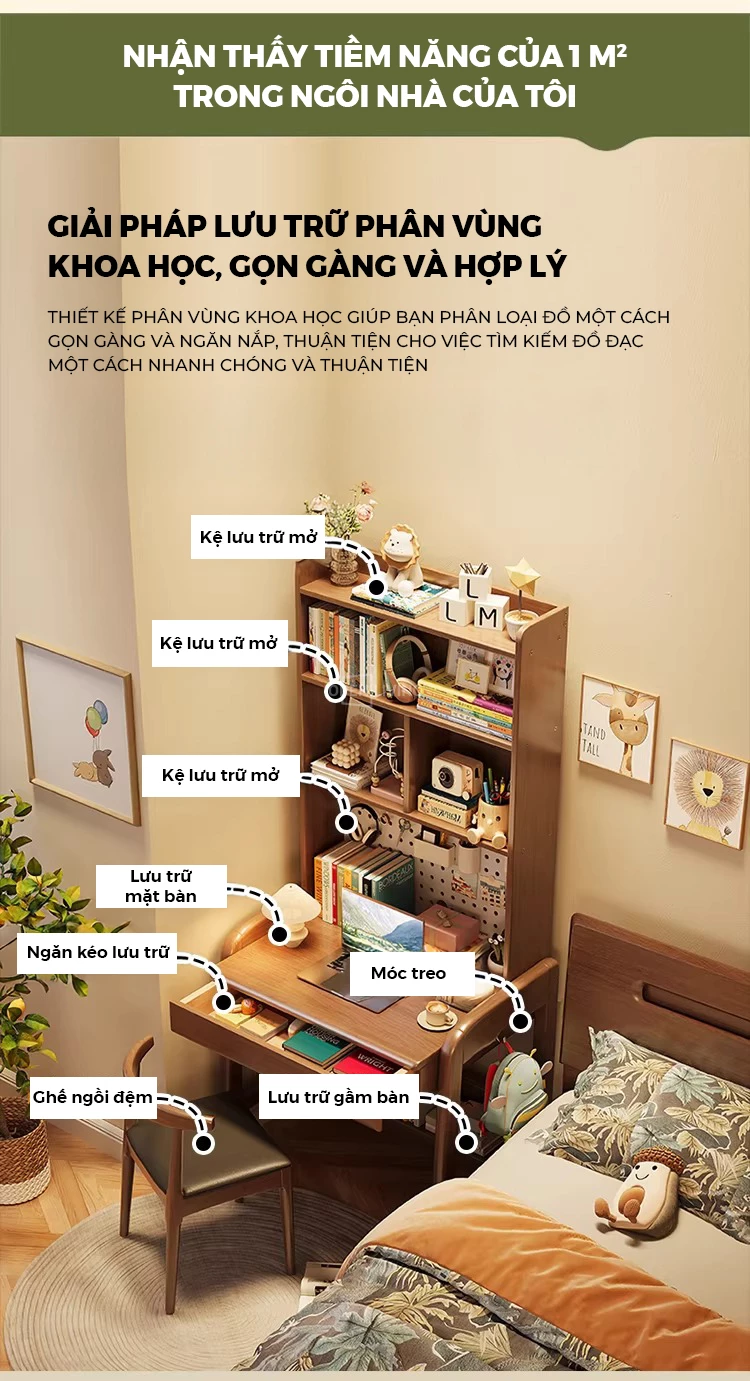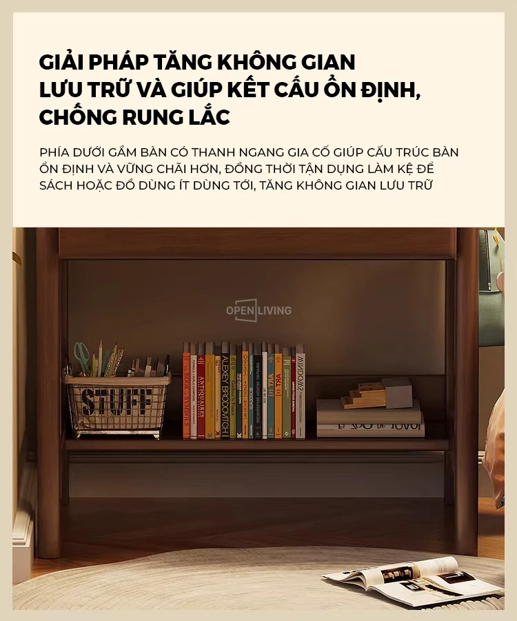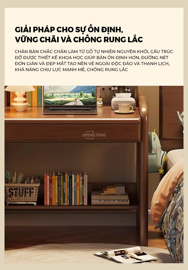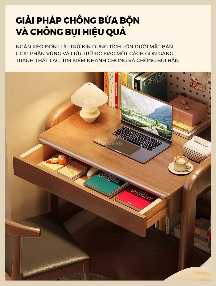 Bàn Làm Việc Gỗ Tự Nhiên Openliving BTN-472 – Thiết Kế Kệ Cao Đục Lỗ Pegboard, Tối Ưu Lưu Trữ Không Gian Nhỏ