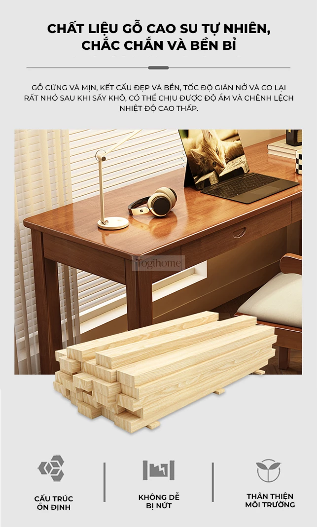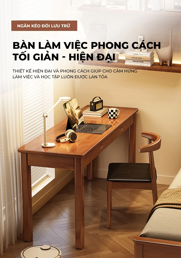 Bàn làm việc gỗ tự nhiên phong cách tối giản Togihome SD203
