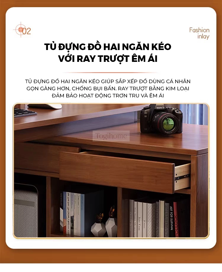 Bàn Làm Việc Gỗ Tự Nhiên Togismart Cho Phòng Ngủ Home Office - Có Kệ Đựng Hồ Sơ - BTN692