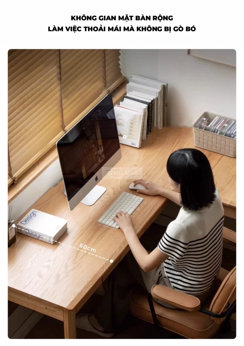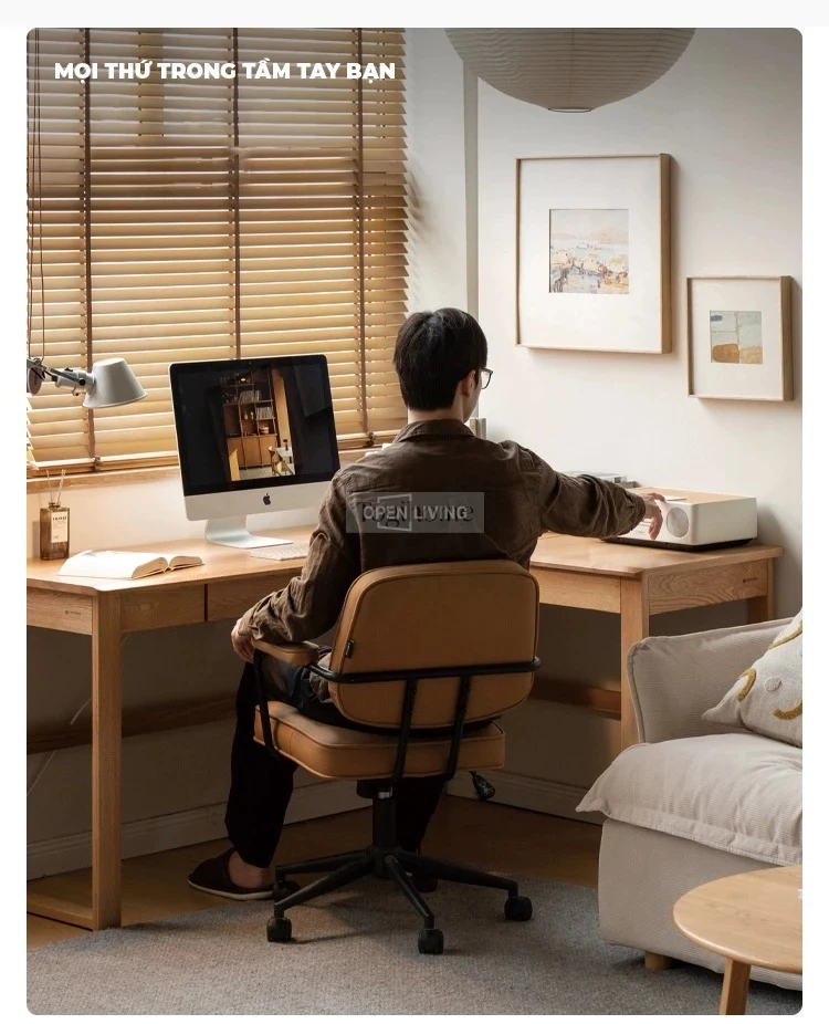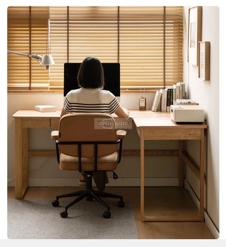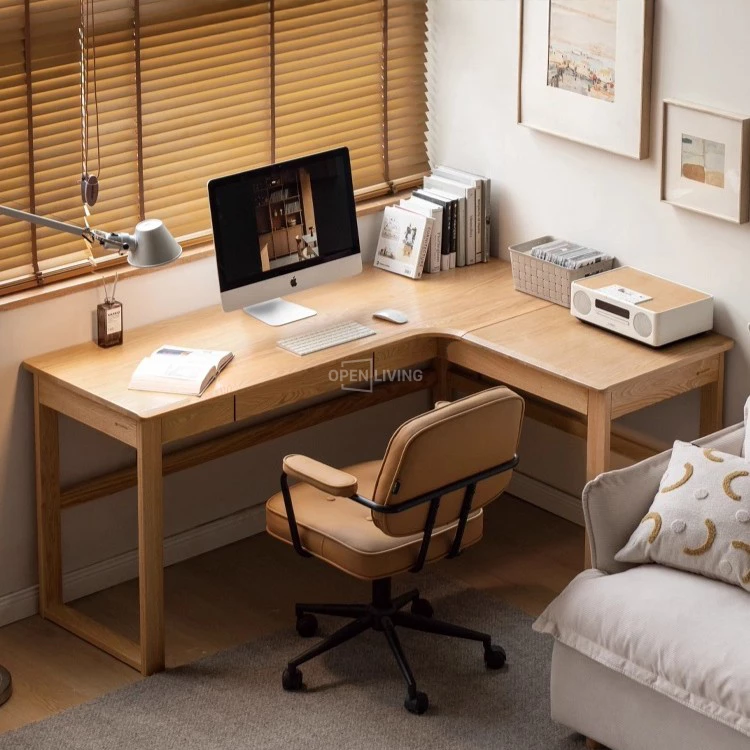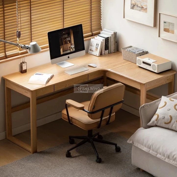 Bàn Làm Việc Góc Chữ L Gỗ Cao Su Tự Nhiên OpenLiving BLV-421 – Bàn Làm Việc Góc Tối Ưu Không Gian Phòng Nhỏ