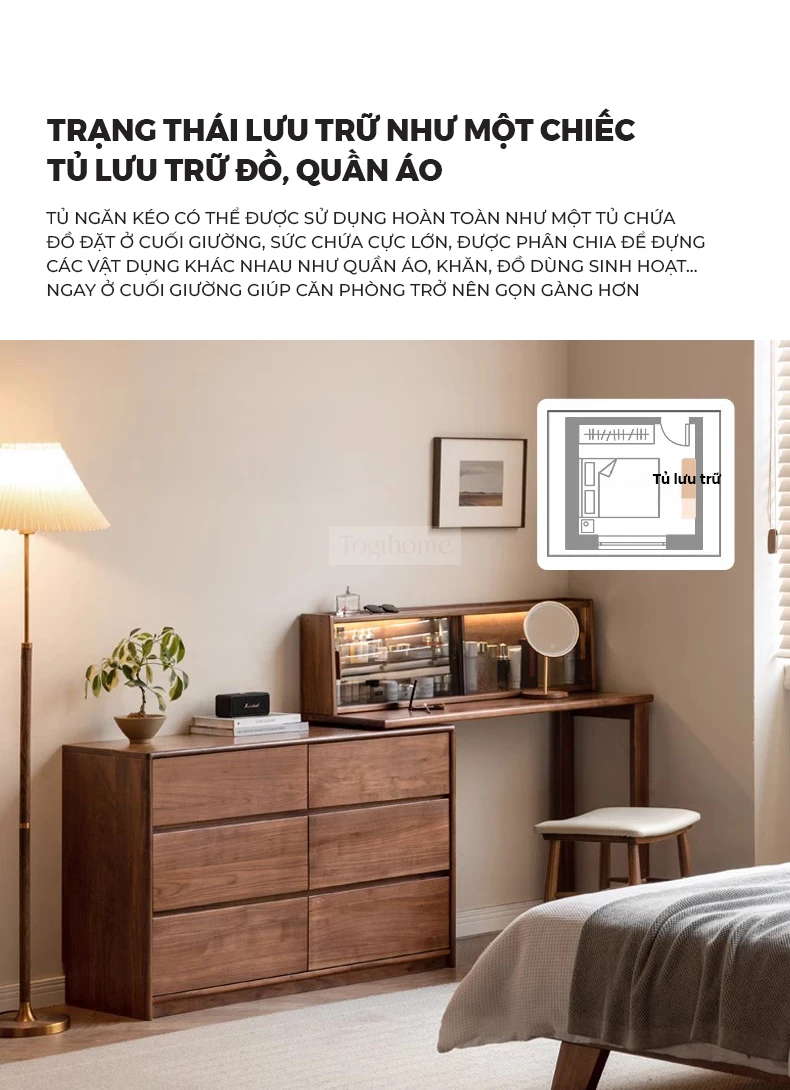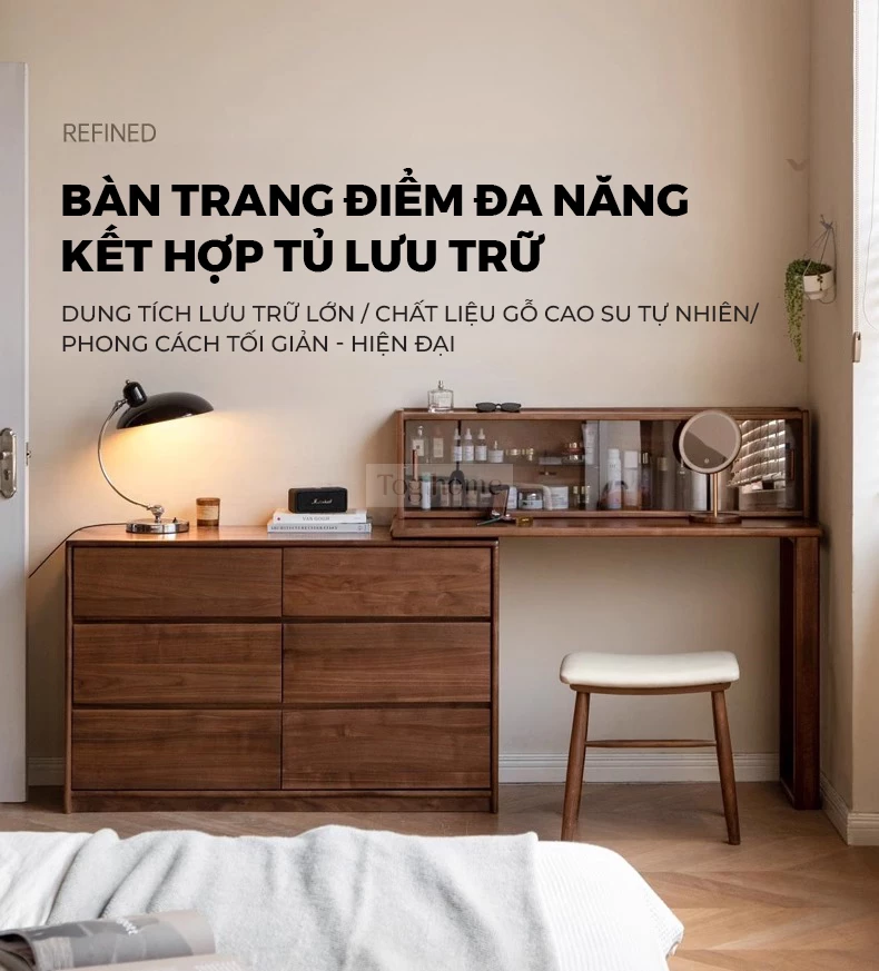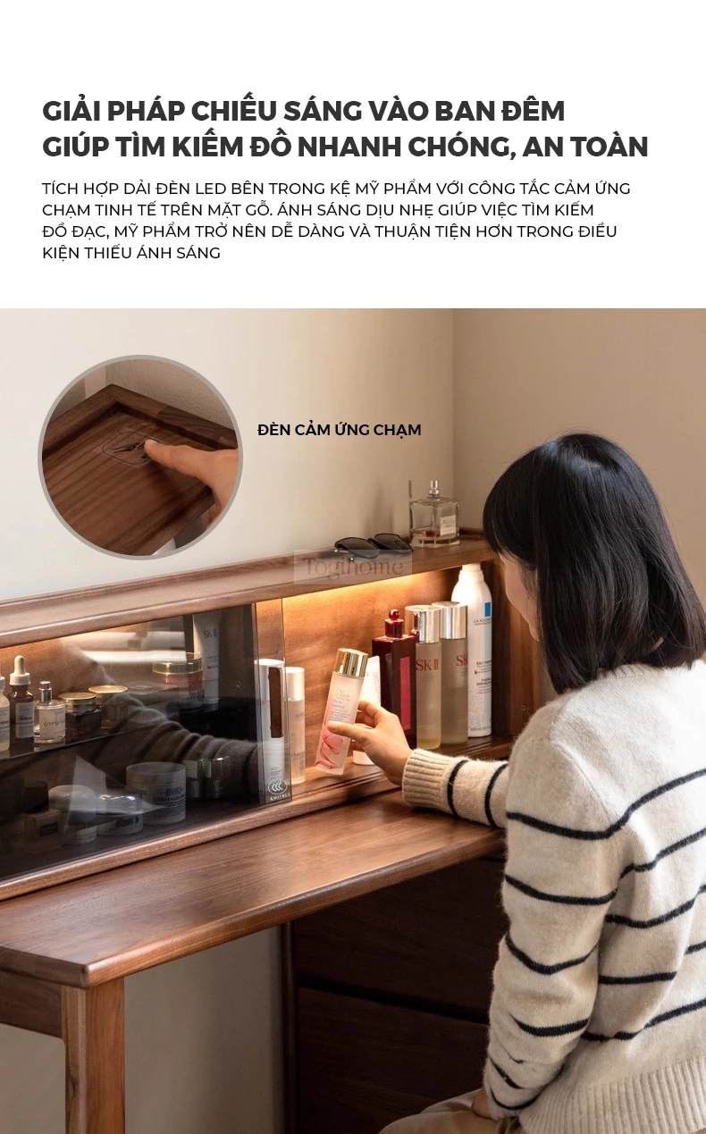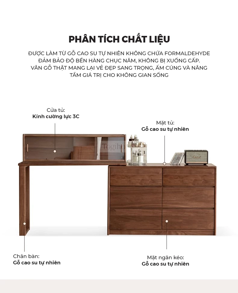 Bàn Trang Điểm Gỗ Cao Su Tự Nhiên Togihome Kèm Tủ 6 Ngăn Và Kệ Kính Trưng Bày - Mã Togismart TĐ330