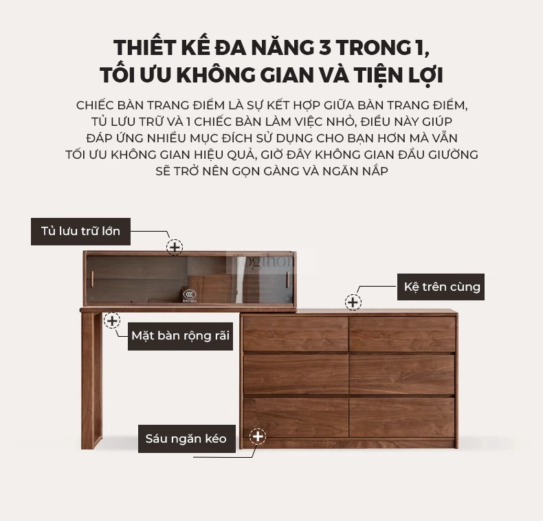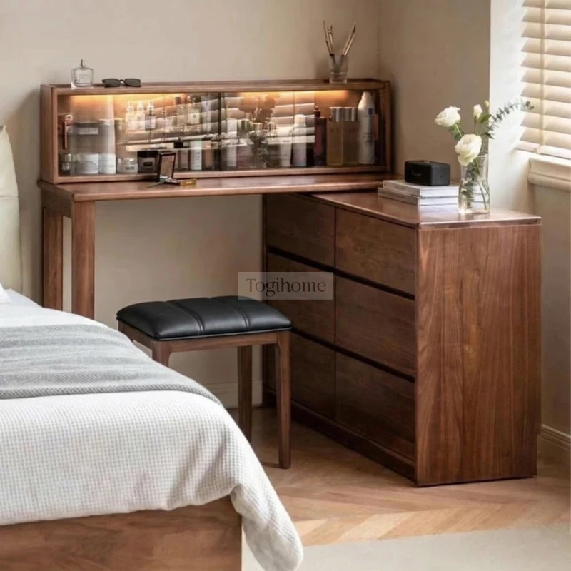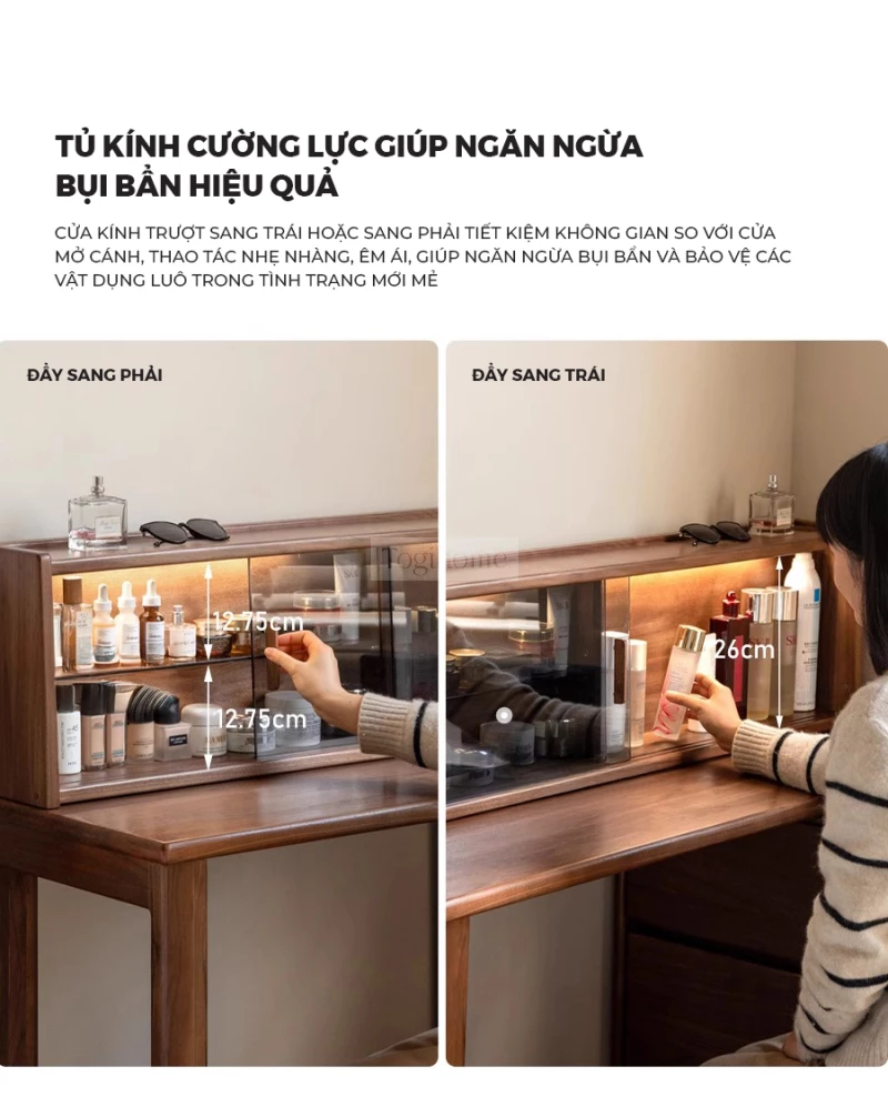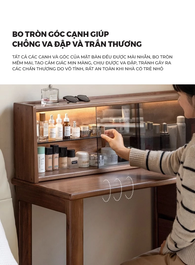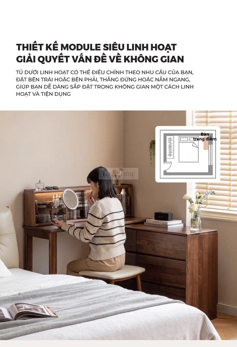 Bàn Trang Điểm Gỗ Cao Su Tự Nhiên Togihome Kèm Tủ 6 Ngăn Và Kệ Kính Trưng Bày - Mã Togismart TĐ330