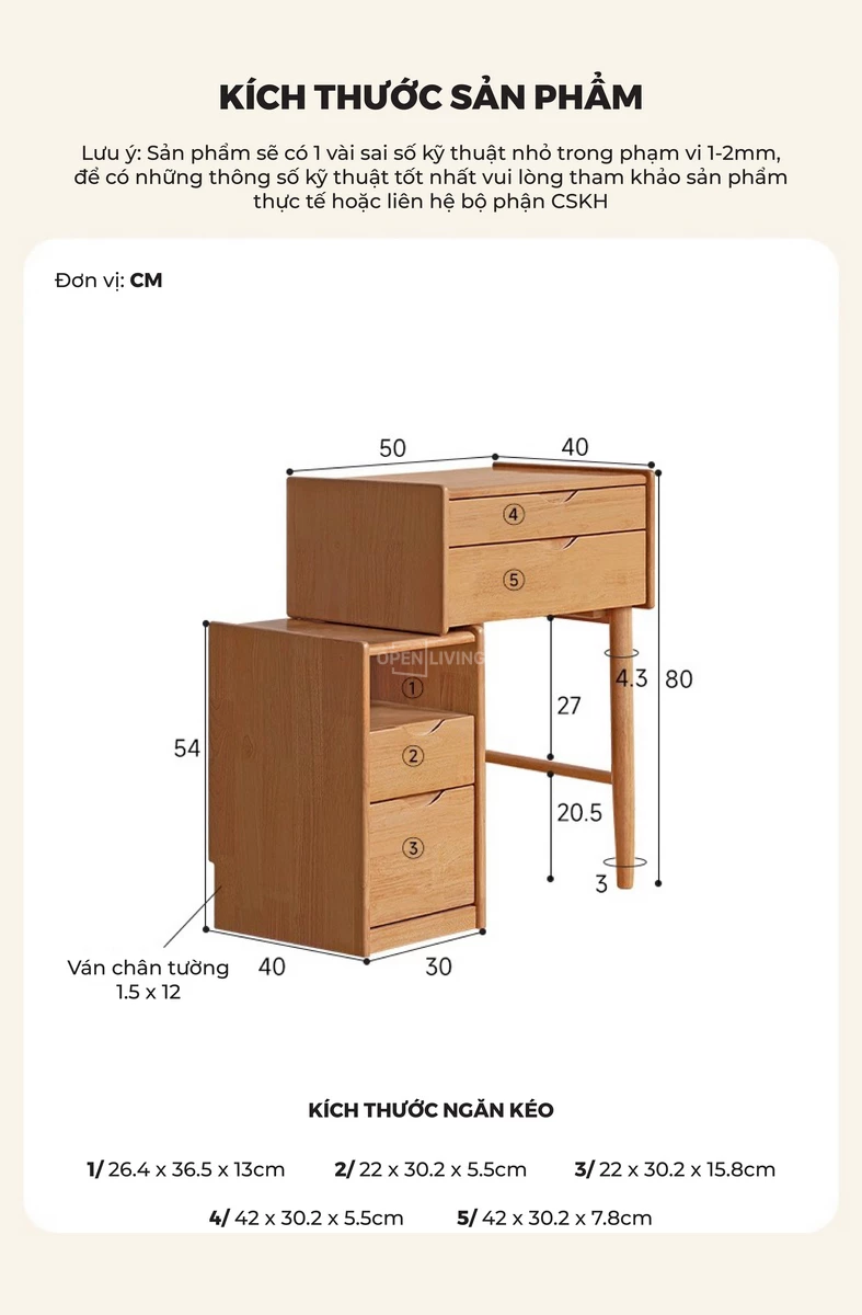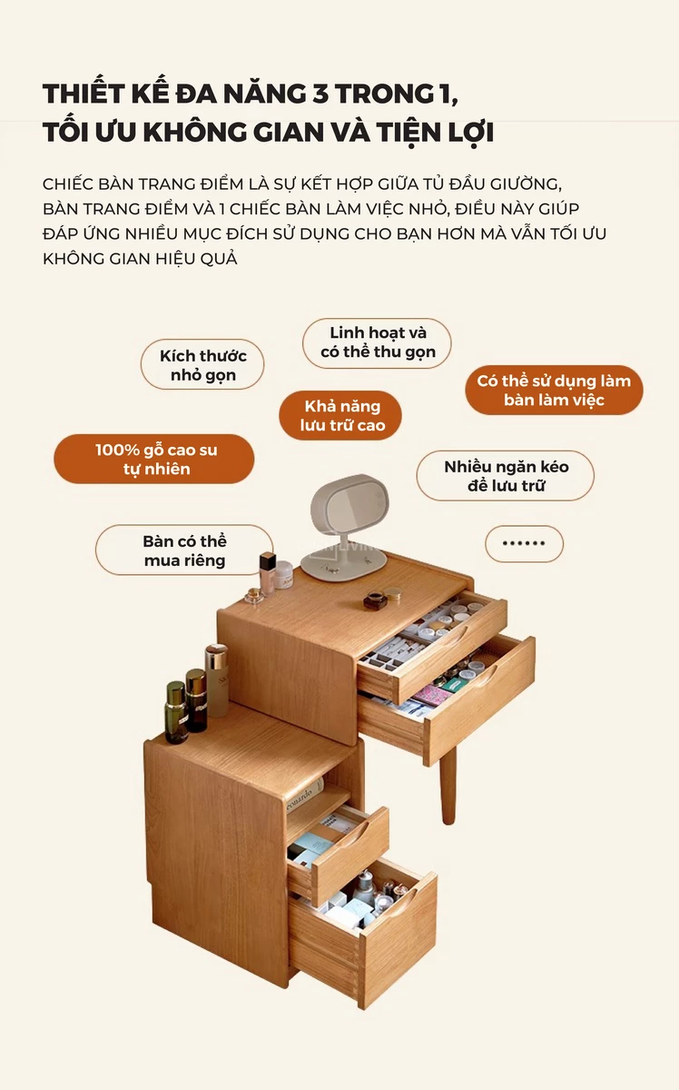 Bàn Trang Điểm Gỗ Tự Nhiên CozyFlex - Openliving 023