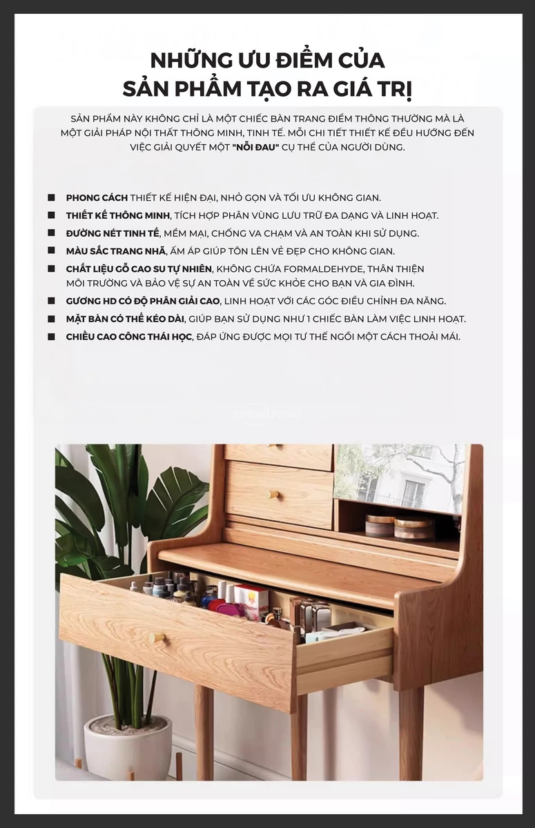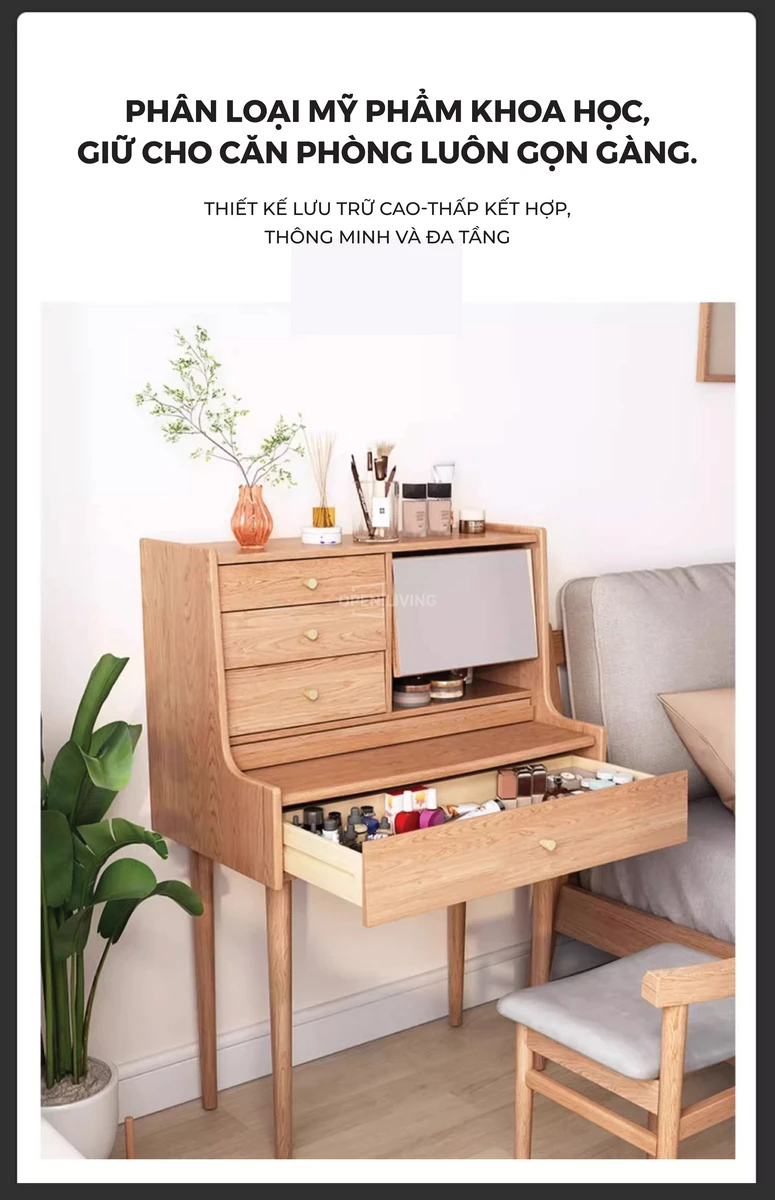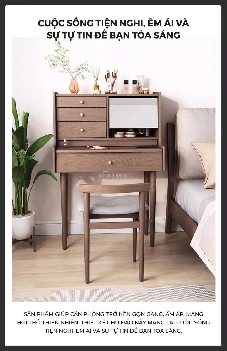 Bàn Trang Điểm Gỗ Tự Nhiên Mira - Openliving 024
