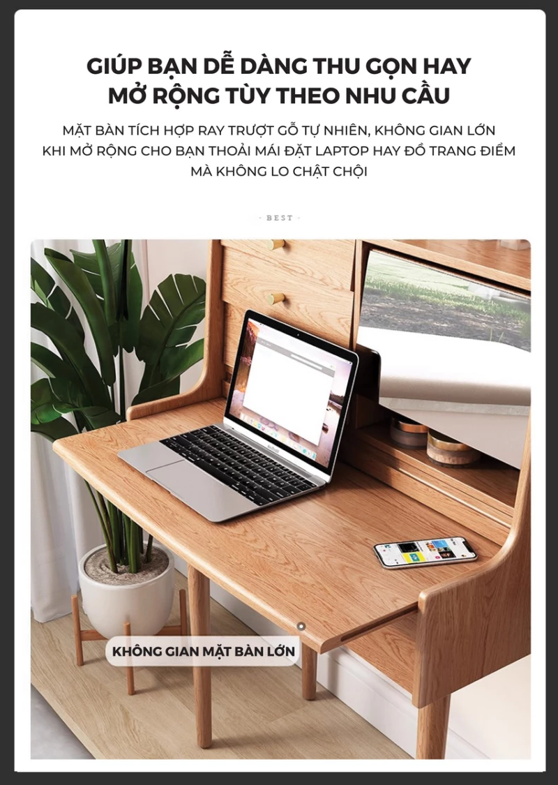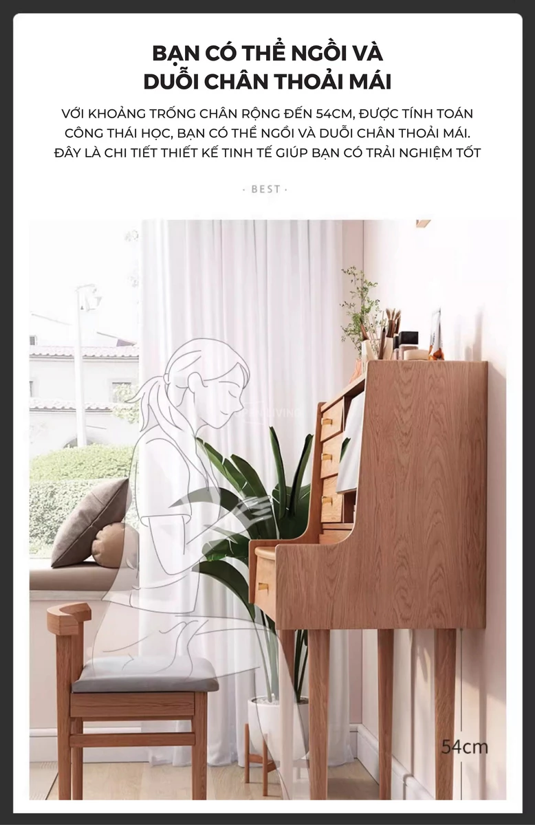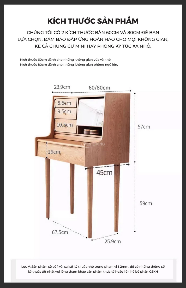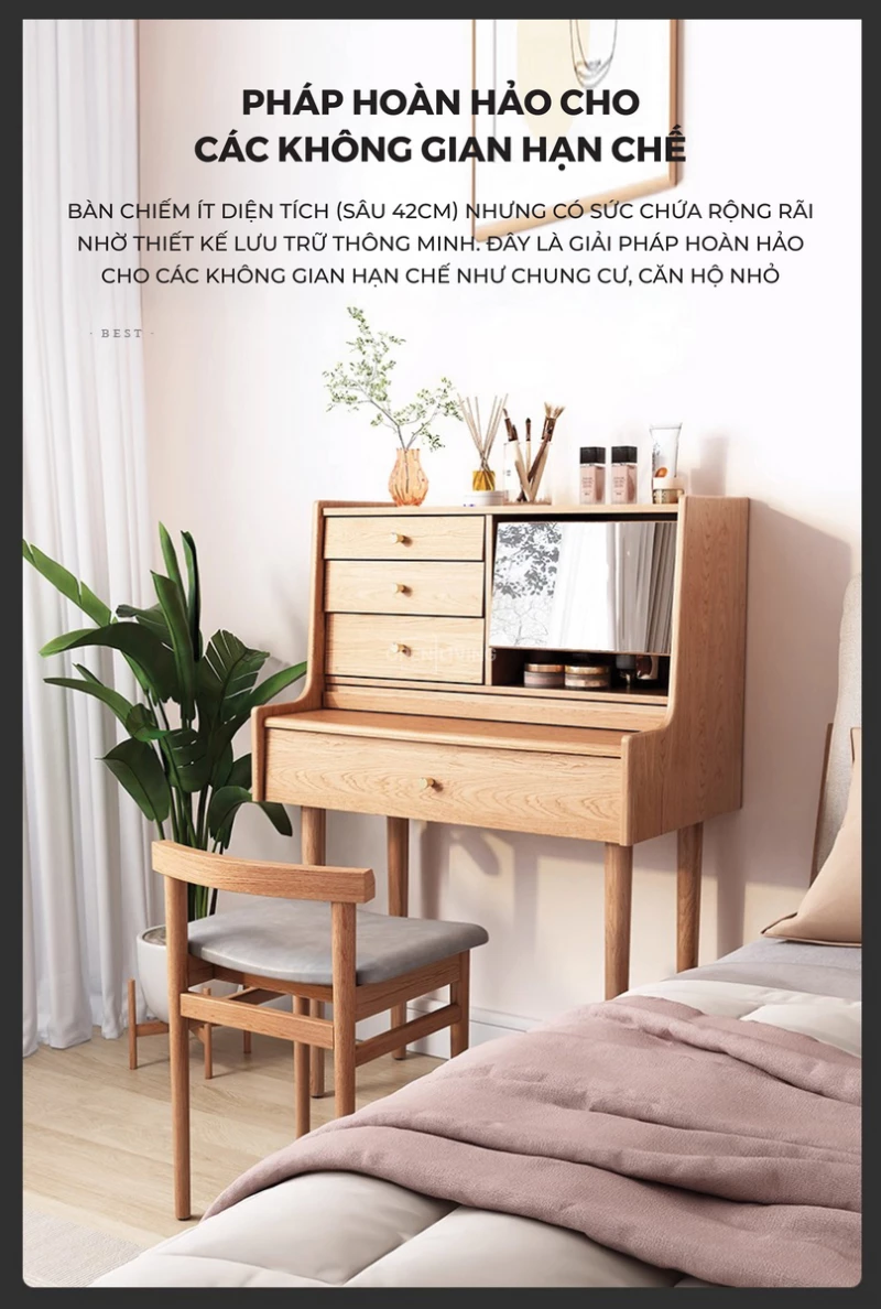 Bàn Trang Điểm Gỗ Tự Nhiên Mira - Openliving 024