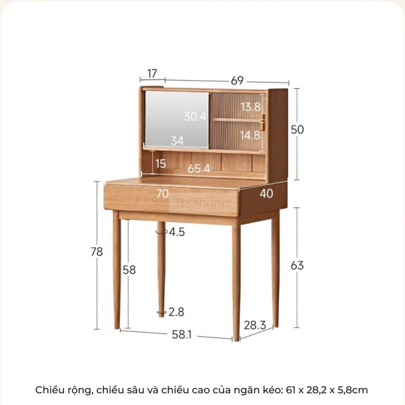 4. Bàn Trang Điểm: Góc riêng tư đầy cảm hứng. Bàn trang điểm Cocoa Living (Ngang 60cm hoặc 80cm) là không gian riêng tư, được thiết kế tinh tế với gương và các ngăn kéo ẩn. Đây là nơi lý tưởng để bạn chăm sóc vẻ ngoài, tô điểm thêm nét duyên dáng cho phòng ngủ.