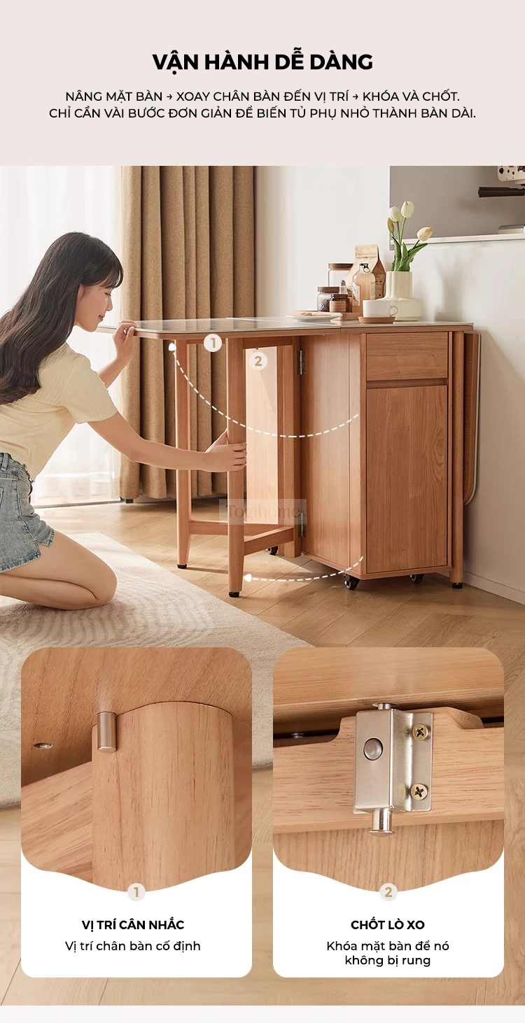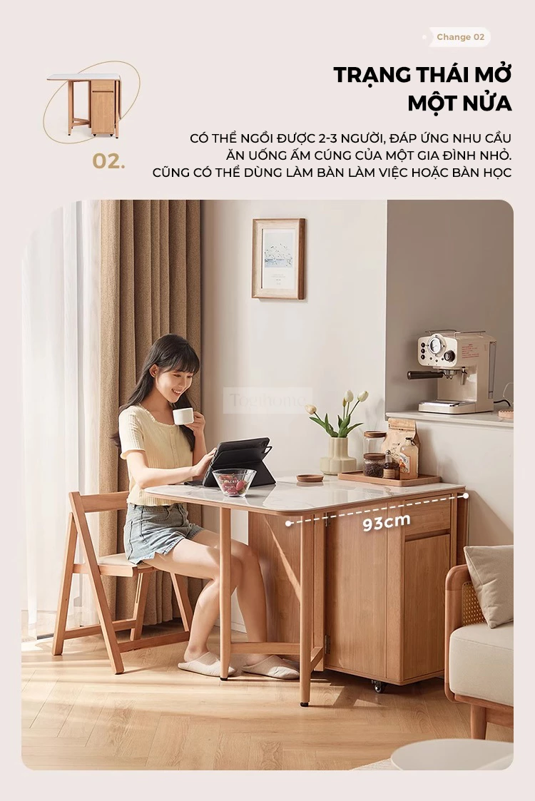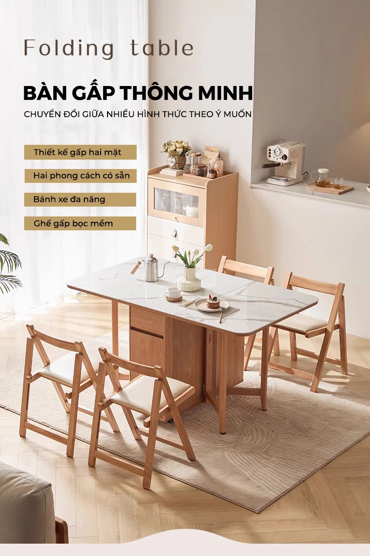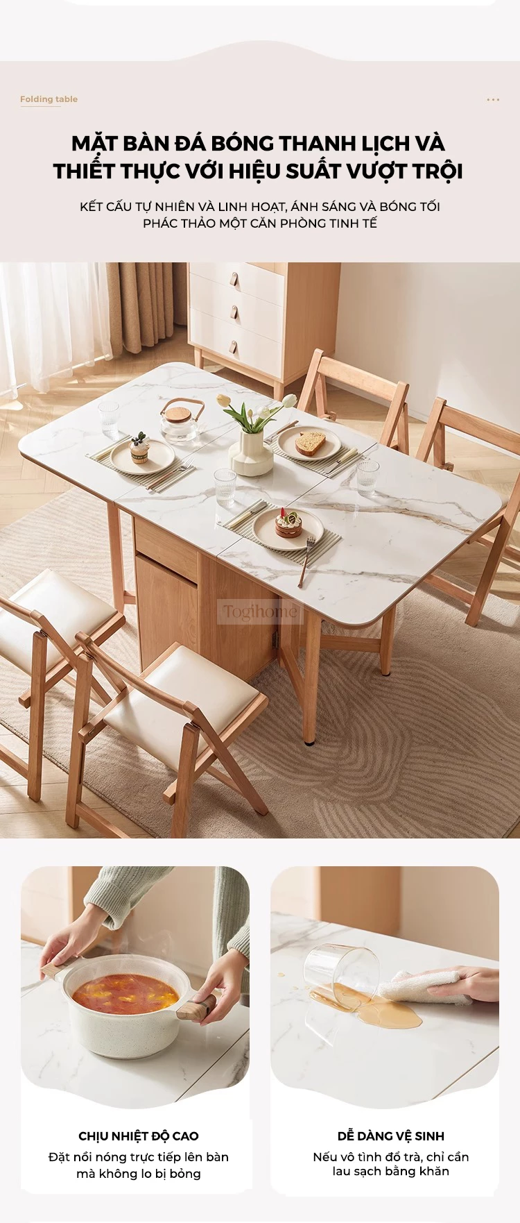 Bàn Ăn Thông Minh Thiết Kế Togismart BS102 được thiết kế từ gỗ tự nhiên cao cấp, mang đến sự chắc chắn và độ bền lâu dài. Với khả năng mở rộng linh hoạt, bàn phù hợp cho cả bữa ăn gia đình và tiếp khách. Khi không sử dụng, bàn dễ dàng gấp gọn, giúp tiết kiệm tối đa diện tích và giữ cho không gian luôn gọn gàng. Kiểu dáng hiện đại, màu gỗ tự nhiên hài hòa dễ dàng kết hợp với nhiều phong cách nội thất. Đây là lựa chọn lý tưởng cho căn hộ nhỏ, nhà phố hay gia đình trẻ muốn tối ưu không gian sống.