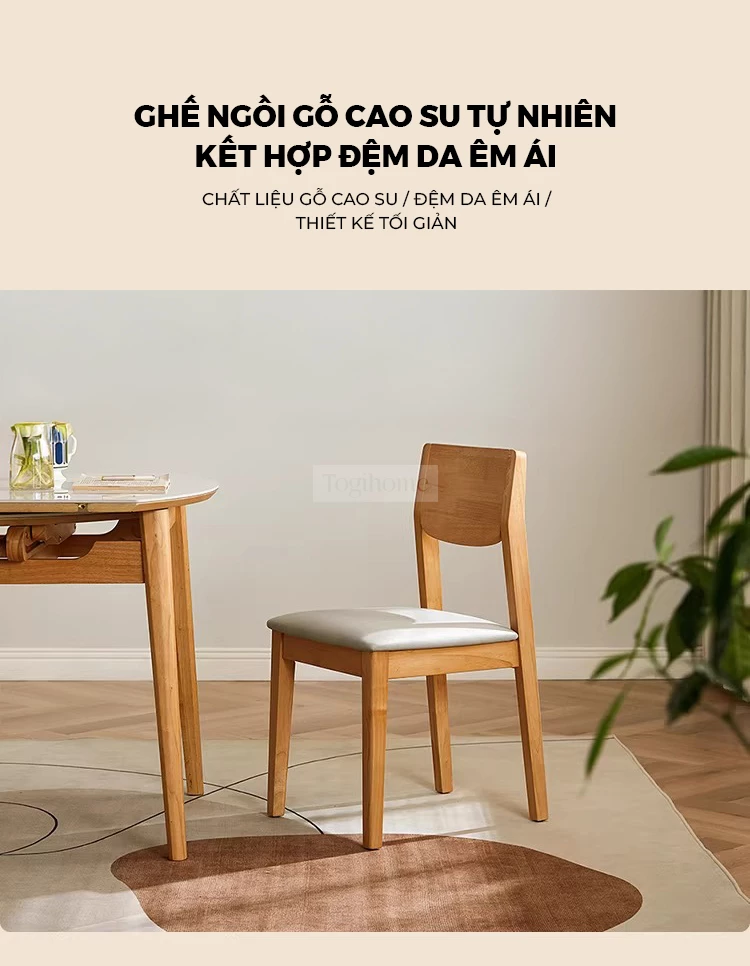 Ghế Gỗ Cao Su Tự Nhiên Đệm Da – Thiết Kế Lưng Cong Công Thái Học - Mã G93