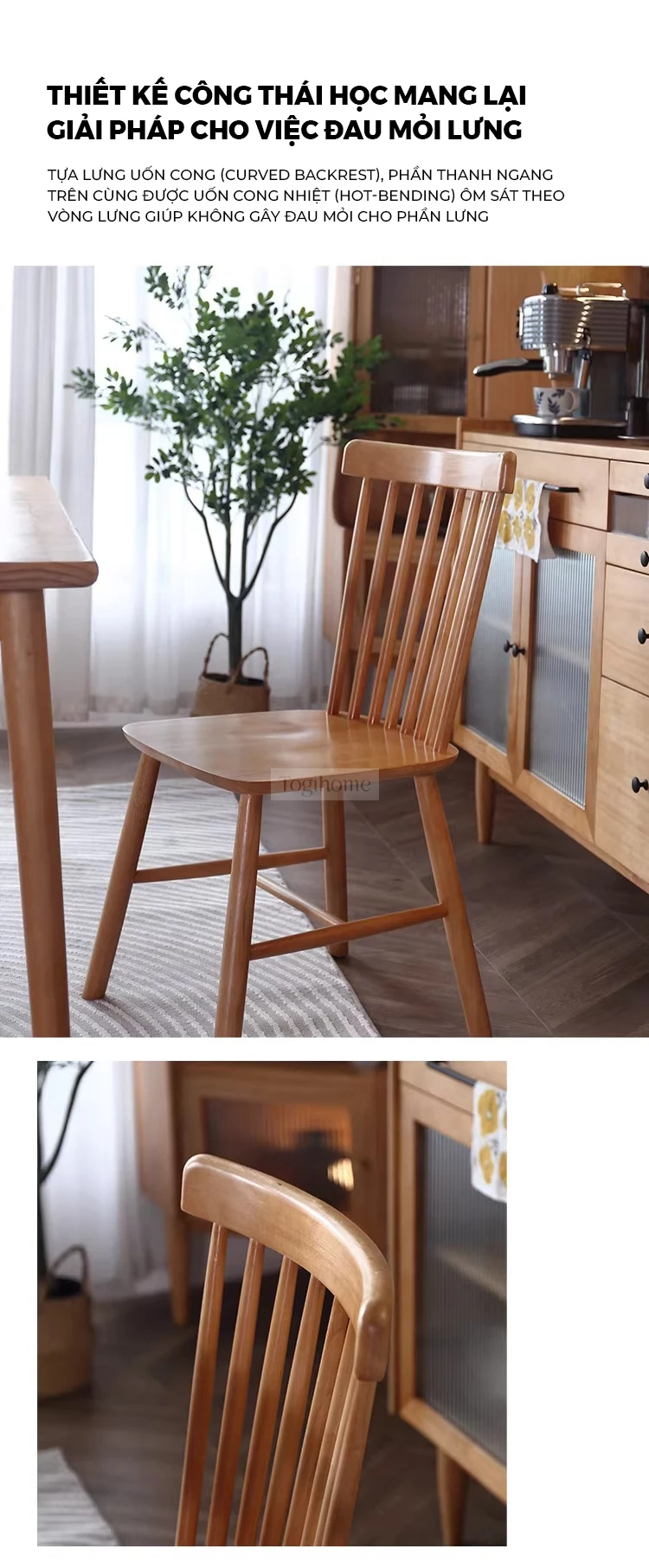 Ghế Ngồi Ăn Gỗ Cao Su Tự Nhiên Phong Cách Tối Giản Bắc Âu - Mã G105