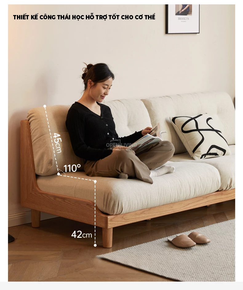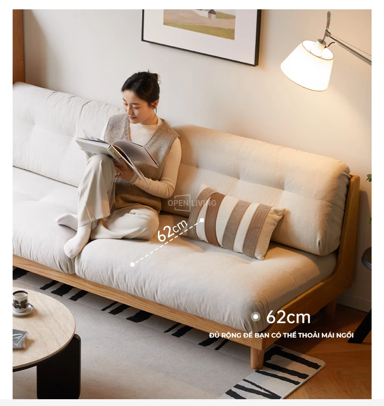 Ghế Sofa Gỗ Tự Nhiên Nagi, Phong Cách Japandi Tối Giản, Siêu Thoải Mái - Mã SF112