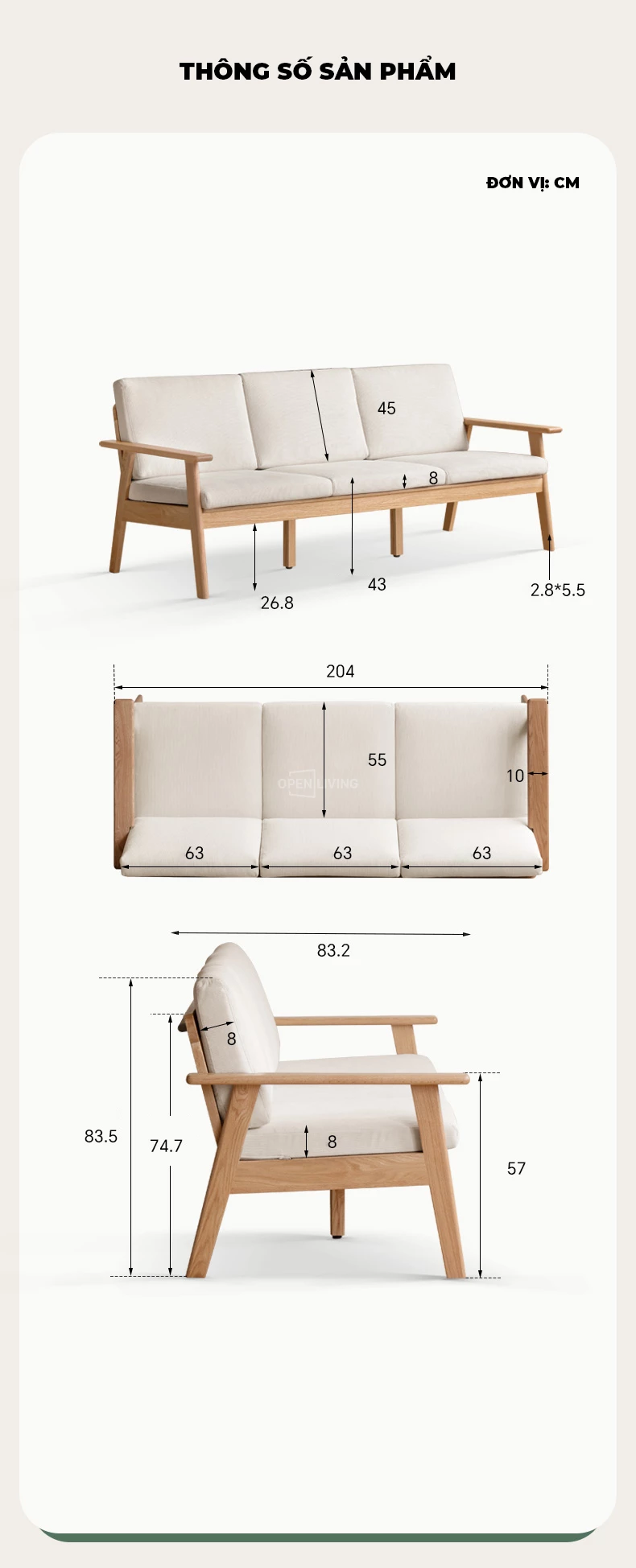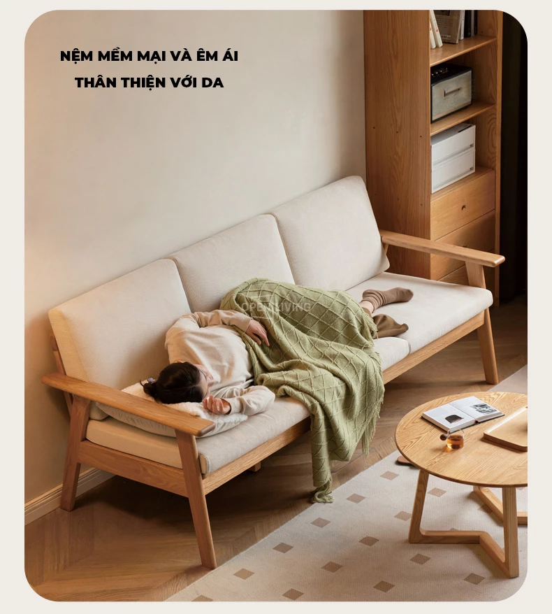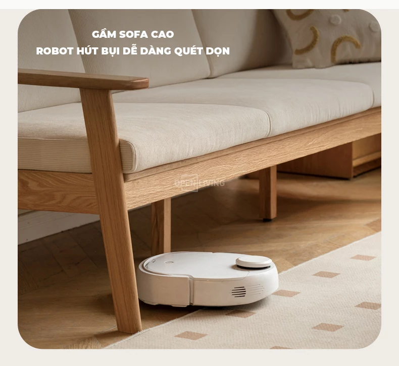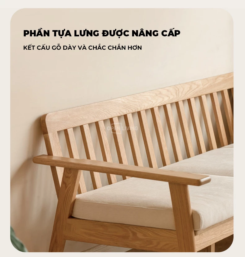 Ghế Sofa Gỗ Tự Nhiên Season, Sử Dụng Quanh Năm, Tựa Lưng Song Gỗ Thoáng Mát - Mã SF115 mang đến trải nghiệm ngồi thoải mái và nâng đỡ cột sống tối ưu. Khung gỗ cao su tự nhiên chắc chắn, vân đẹp và thân thiện với môi trường, phù hợp nhiều không gian sống hiện đại. Đệm ngồi êm, độ sâu 55cm tạo sự thư giãn khi đọc sách, xem phim hay tiếp khách. Gầm sofa cao giúp robot hút bụi dễ dàng làm sạch toàn bộ khu vực bên dưới. Thiết kế tối giản, sang trọng, dễ phối màu và giữ phòng khách luôn gọn gàng, tinh tế.