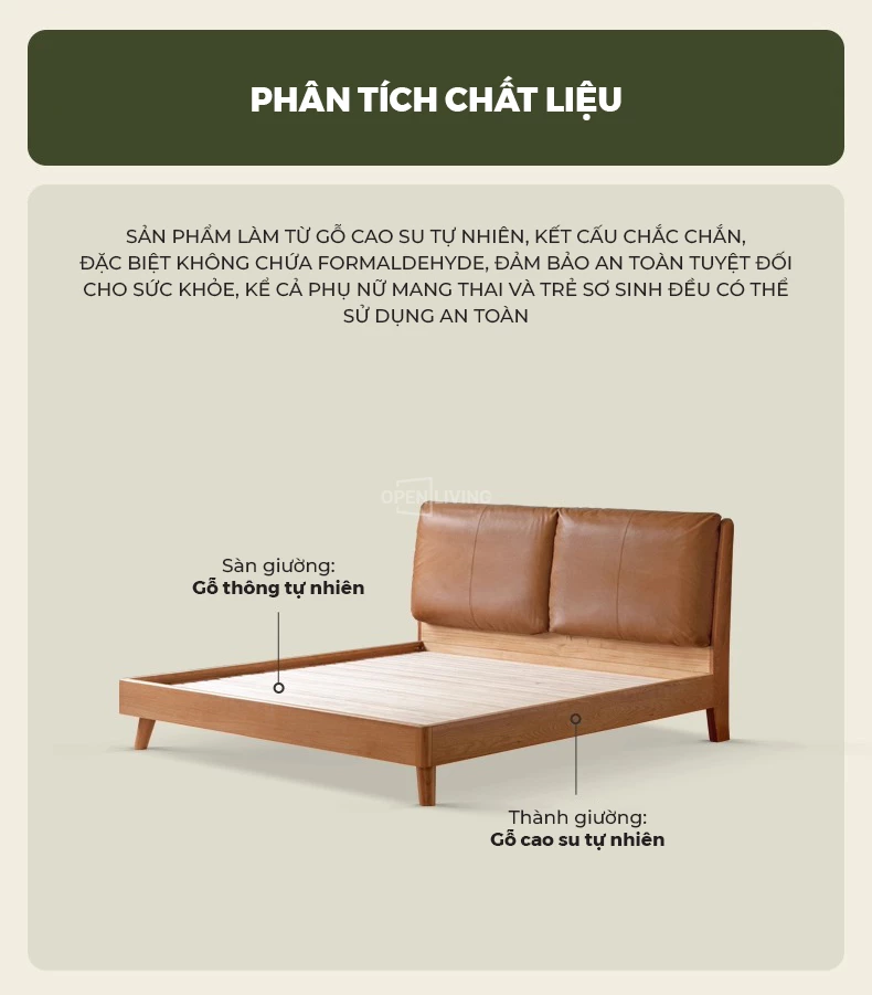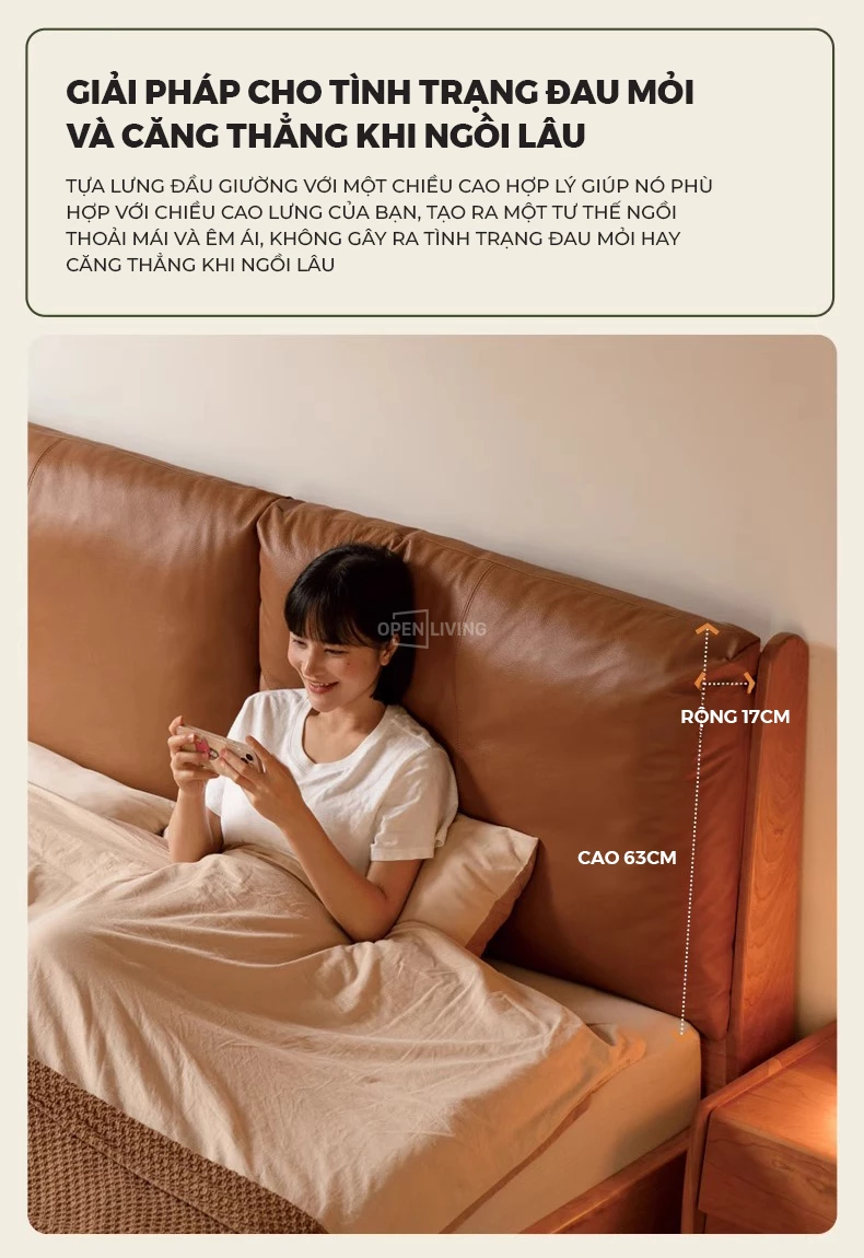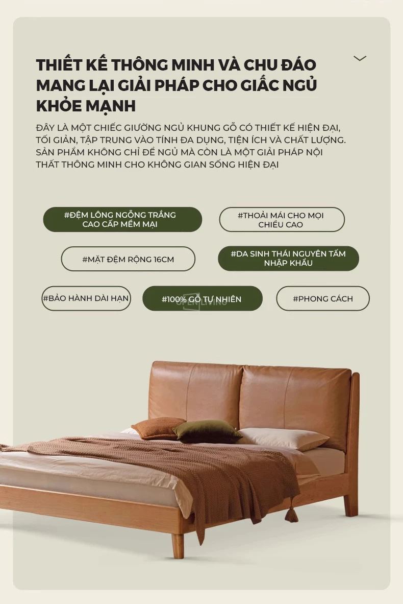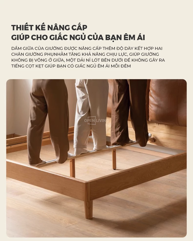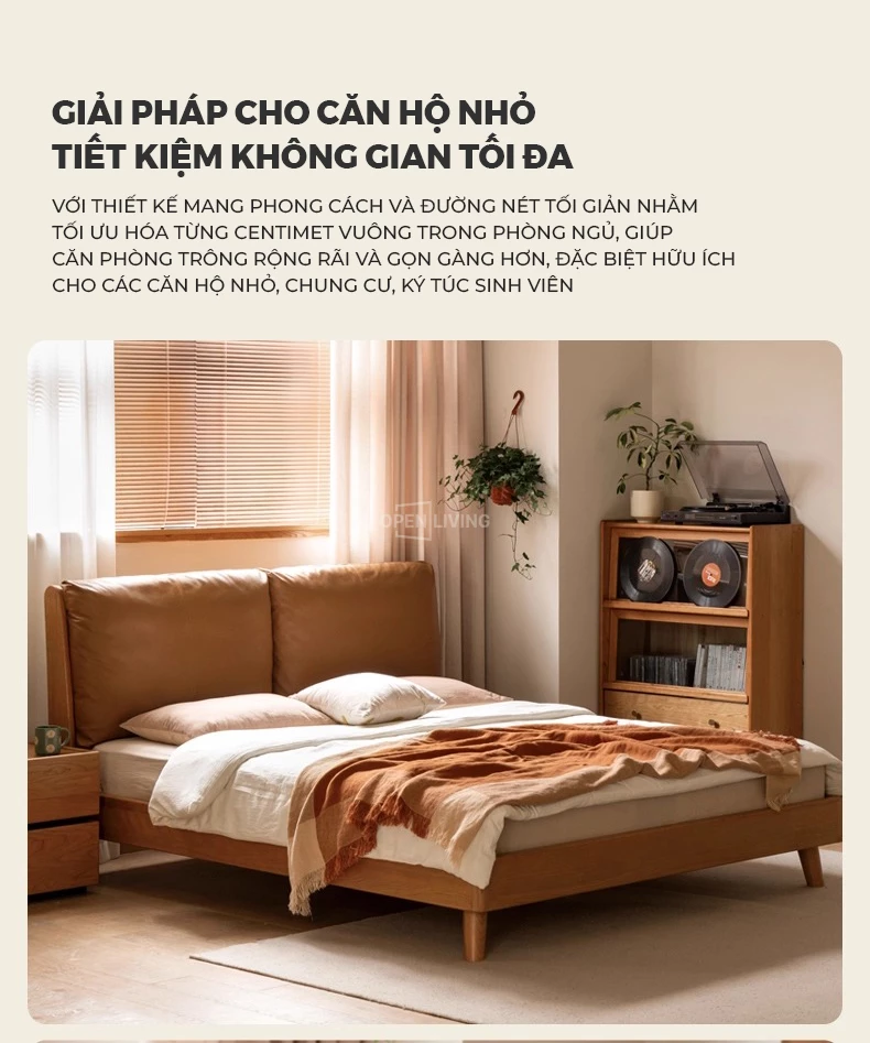 Giường bọc da Nordic soft – Tựa da êm ái, chân gỗ chắc chắn OGG 059