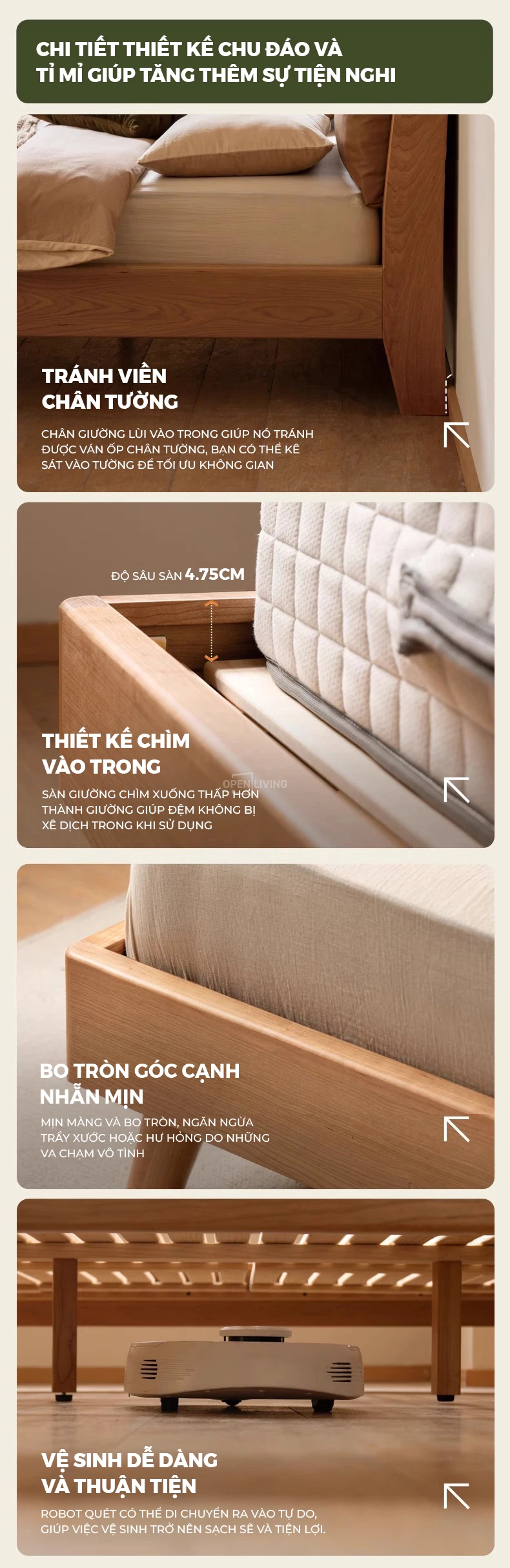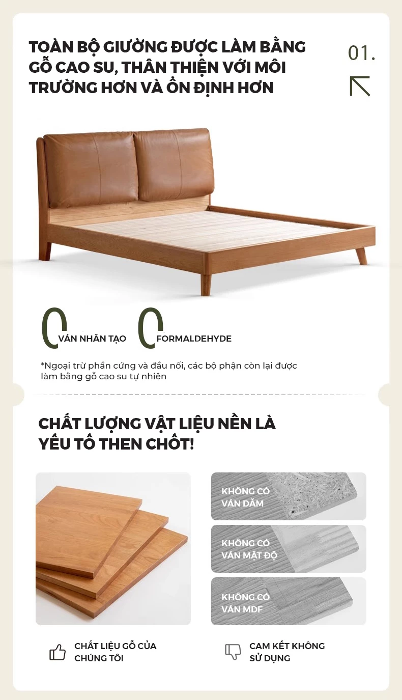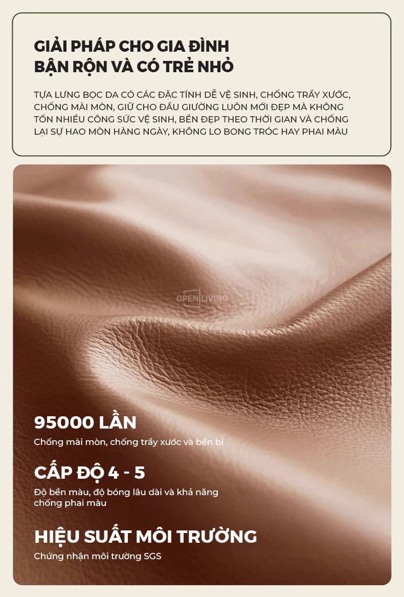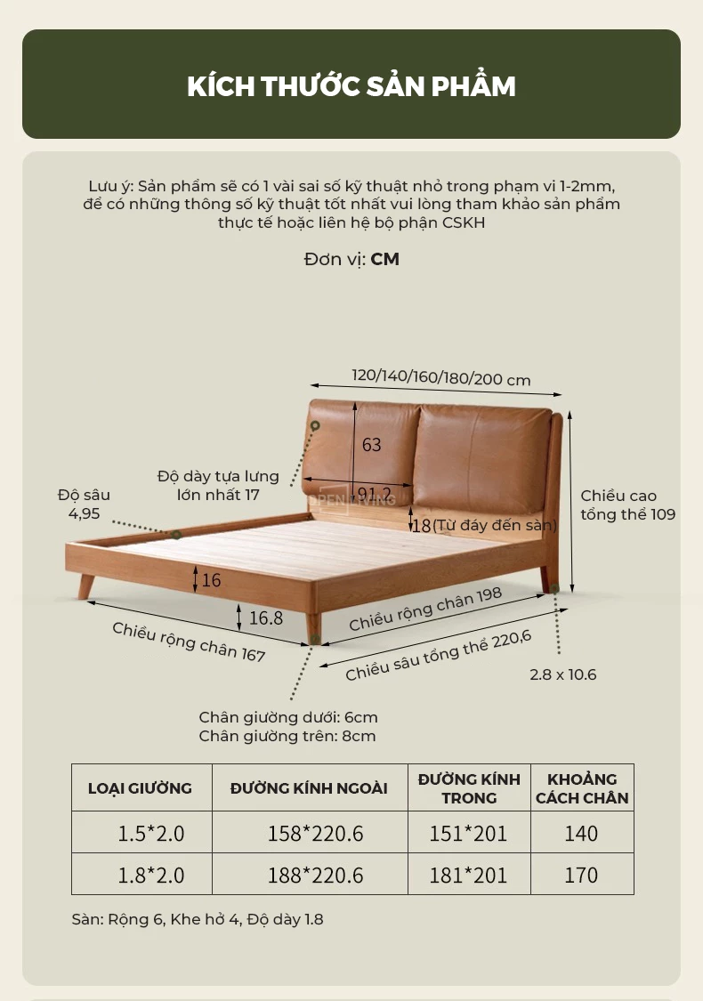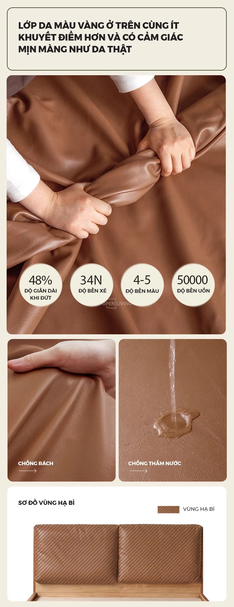 Giường bọc da Nordic soft – Tựa da êm ái, chân gỗ chắc chắn OGG 059
