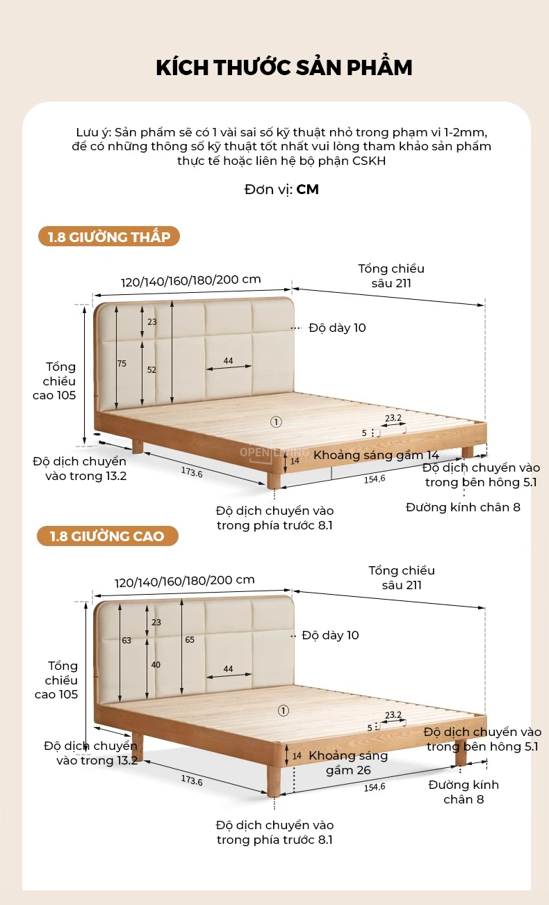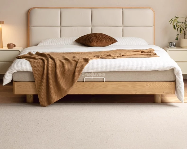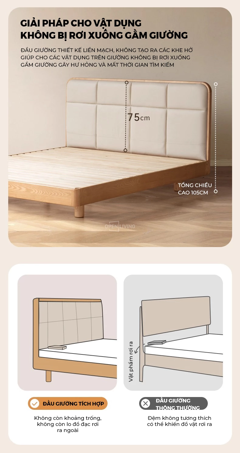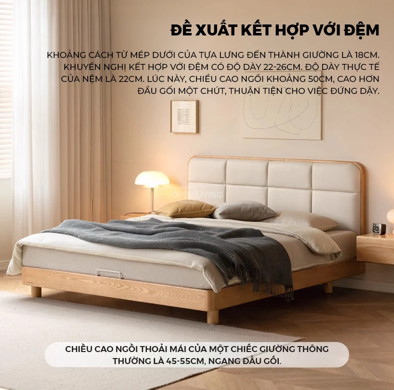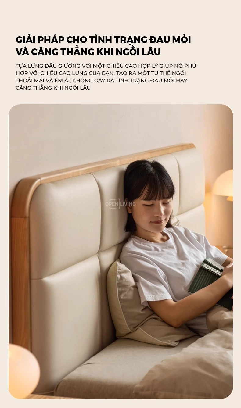 Giường Bọc Da Oslo Openliving 126 – Đệm Da Êm Ái, Chân Gỗ Nguyên Khối