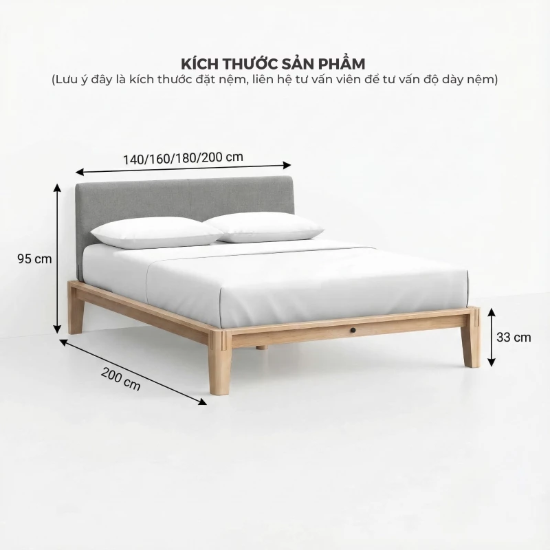 Togismart sử dụng 100% gỗ cao su tự nhiên (Rubberwood) cho khung giường GM118, giữ nguyên màu gỗ sáng (Natural).