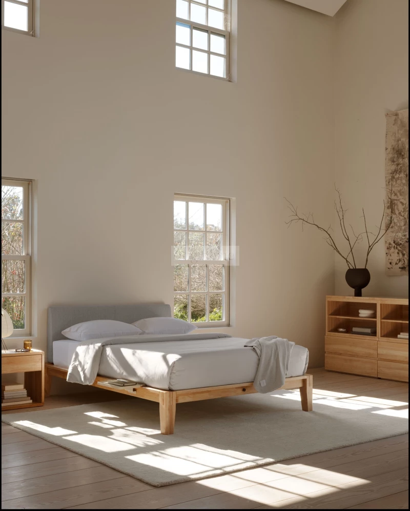Ẩn sau vẻ đẹp tinh tế là hệ thống chịu lực mạnh mẽ từ các thanh nan giường gỗ thông tự nhiên.