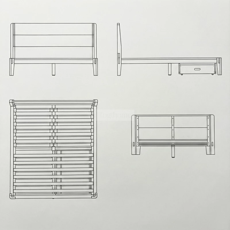 Sức khỏe của khách hàng là ưu tiên số 1 của Togismart. Khung giường được chế tác hoàn toàn từ gỗ cao su tự nhiên (Rubberwood), loại bỏ hoàn toàn việc sử dụng gỗ công nghiệp kém chất lượng.